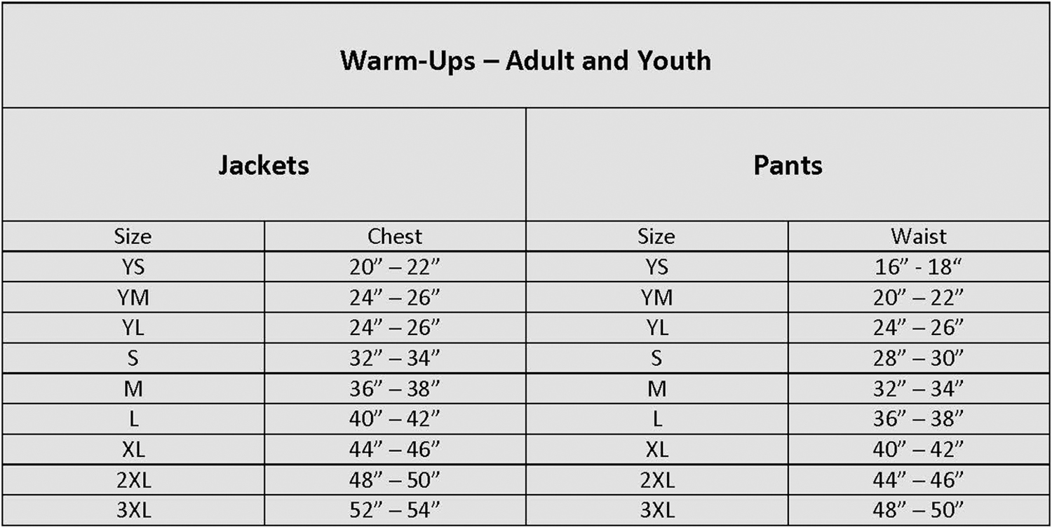 • Jacket and pants sold as a complete set only