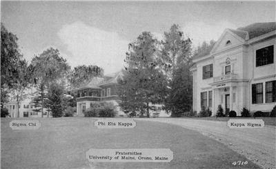 Very attractive and historic postcard showing view of Maine. Sigma Chi, Phi Eta Kappa & Kappa Sigma.