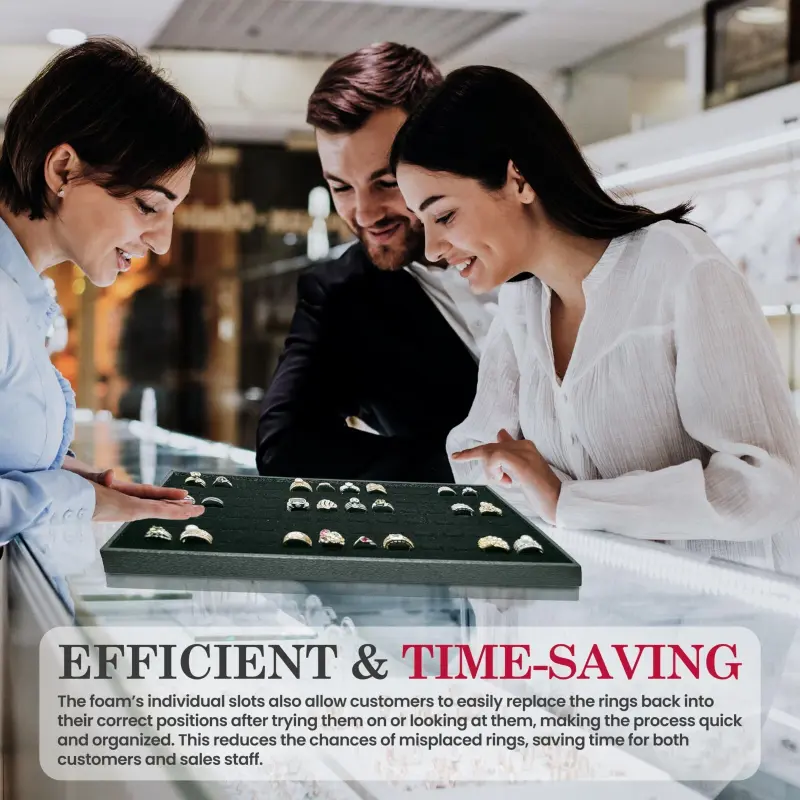 - Set Includes: This set comes with a sturdy wooden utility tray and a foam insert designed to hold up to 72 rings. It provides both secure organization and a sleek presentation for rings and small jewelry items.