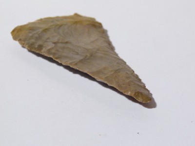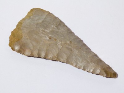 1 of a number of ancient worked flints from the Ex REYNOLDS collection... who bought them from the Ex INNES collection...some are numbered with their numbers..I have not added numbers etc..some would call them all ARROW HEADS or KNIFE blades, POINTS etc....but there could be any number of uses for them and I am sure you American collectors have all sorts of names for them ... Most are Native American but there may be an odd one or two that are European..I am sure you collectors will know what you are looking at....Some of them are Flint and others are Chalcedony and there may be some other sorts of stone too... again please ENLARGE the photographs to determine what you are looking at....there is NO provenance for any of them other than they are from the Ex INNES collection initially.
