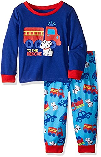 He'll love to snuggle up in this fun pajama set, which features a colorful and super cute 'To The Rescue' Firetruck and Dalmatian theme. The colorful coordinating print PJ pants have an elasticized waistband for a custom fit. The pajama set is also crafted of 100% breathable polyester jersey material that will keep him comfortable throughout the night. Whether he's lounging at home or snuggled up in bed, this pajama set will surely add a fun and playful touch to his sleepwear collection.
