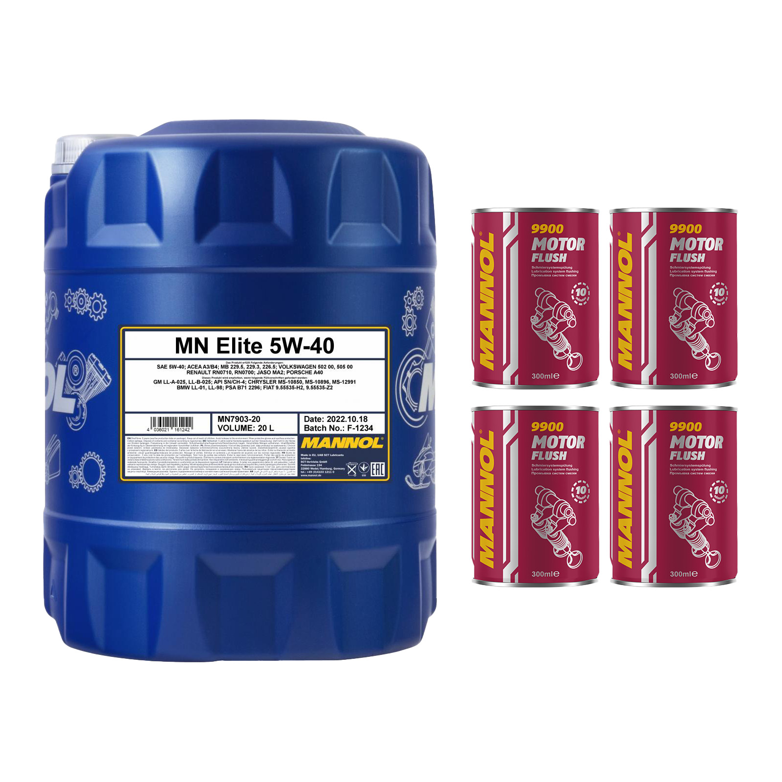 1x20 Liter MANNOL Elite 5W-40 5W40 Motoröl 4x Motor Flush 9900 Set