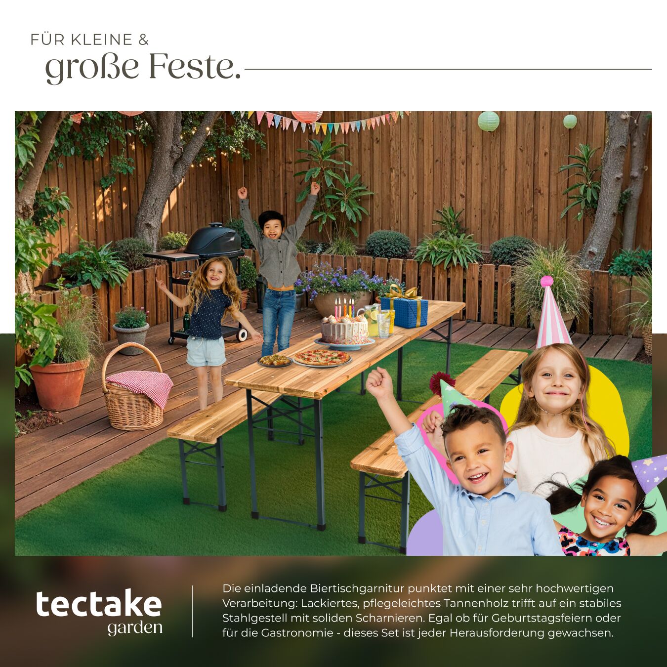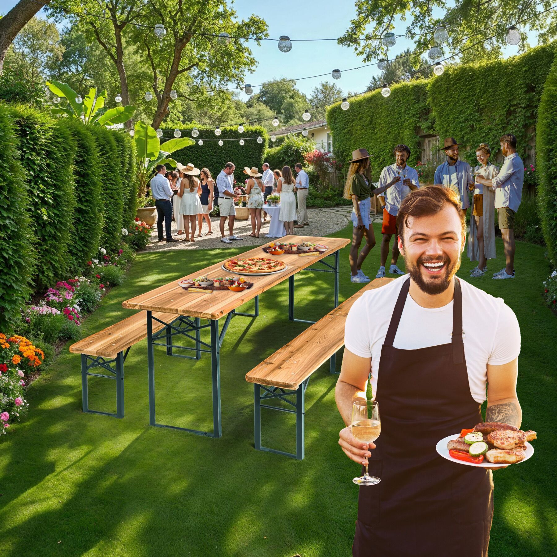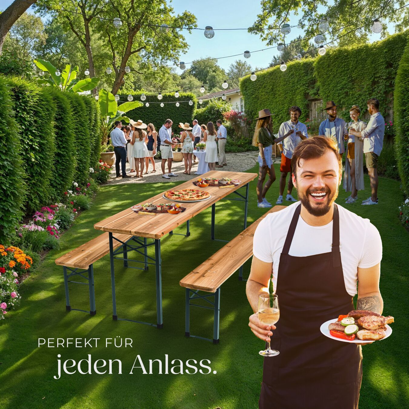 - Bänke und Biertisch zum einfachen Transport in der Mitte faltbar