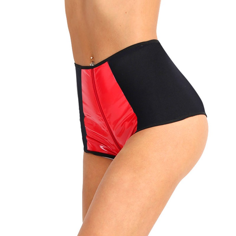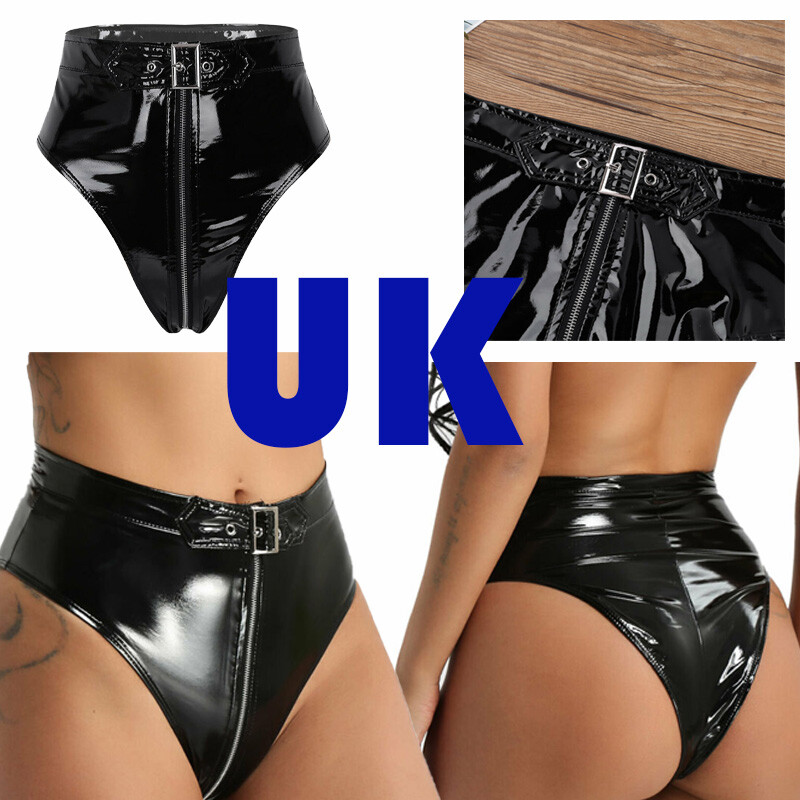 Womens patent leather bikini briefs underwear, stretchy fabric.