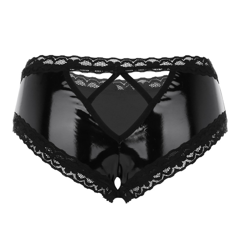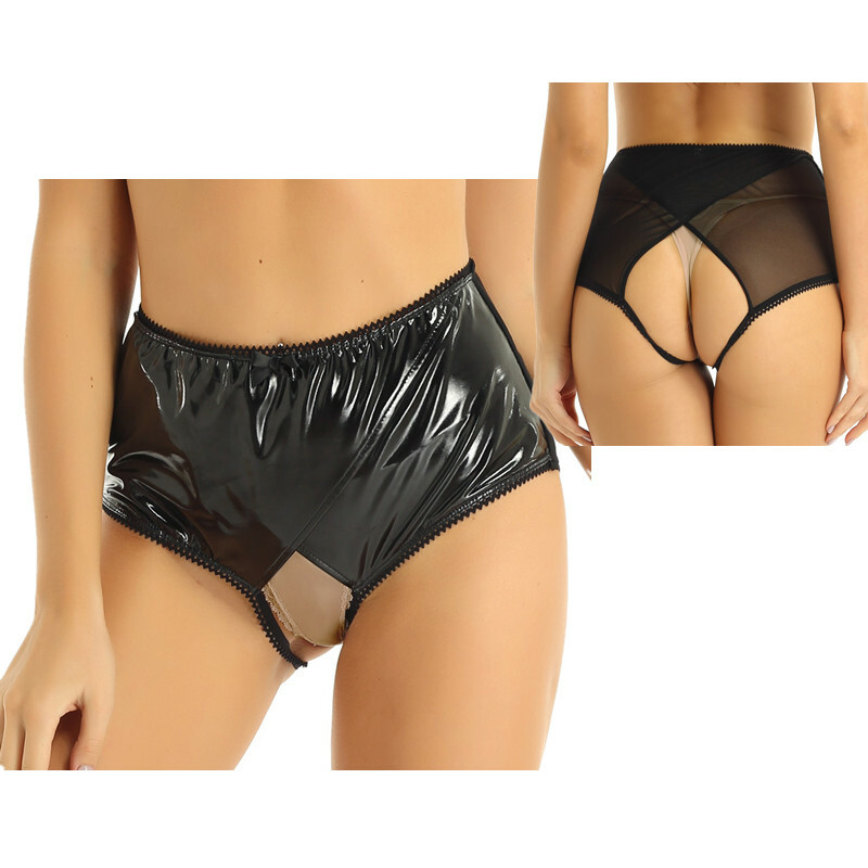 Women's Wet Look Patent Leather Briefs Underwear, Pull On Closure.
