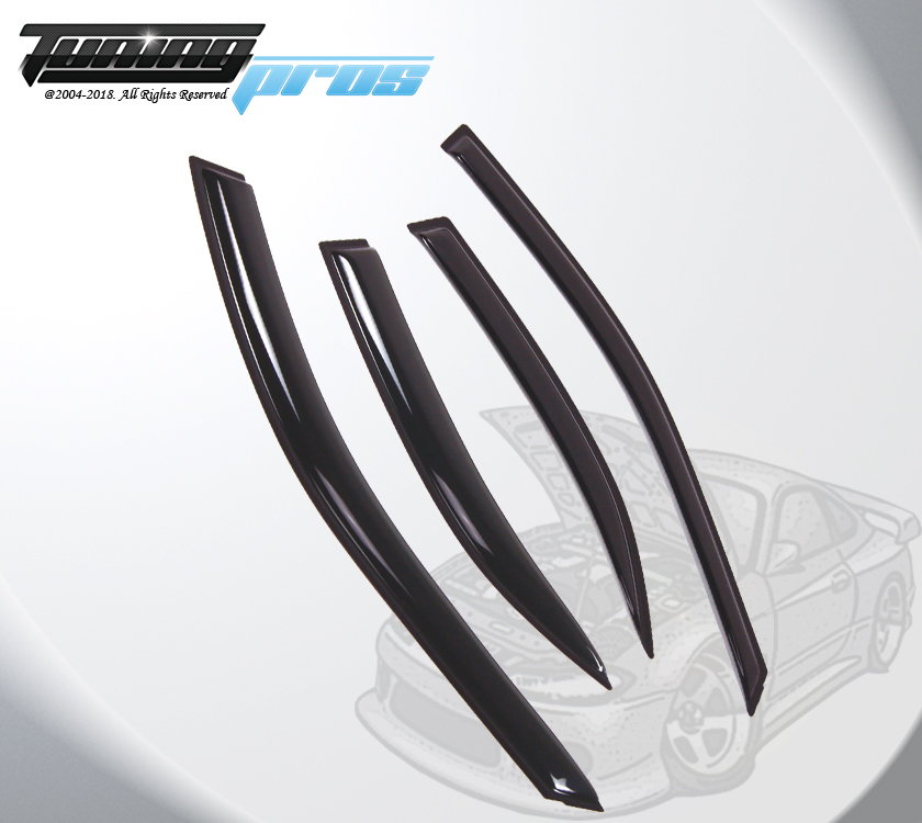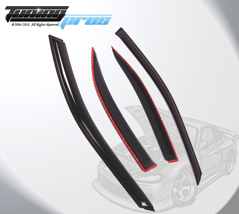 This vent visors are the most popular accessory for all vehicles. Made of reinforced acrylic in smoke tinted color. It can help to reduce heat buildup in parked vehicles by allowing air in when partially open. The vent visor keeps rain out and lets fresh air in vehicles. Easy installation with approved tape. Custom made fit each model (Please check compatibility table on this listing). Each sold for One complete set. Coupe models (2 Door/ Hatchback) contains 2 vent shades visors. The Sedans, wagons and SUVs contain 4 vent shades visors (Please check on listing title and picture about 2pcs or 4pcs visor for this listing). Spec & Features: