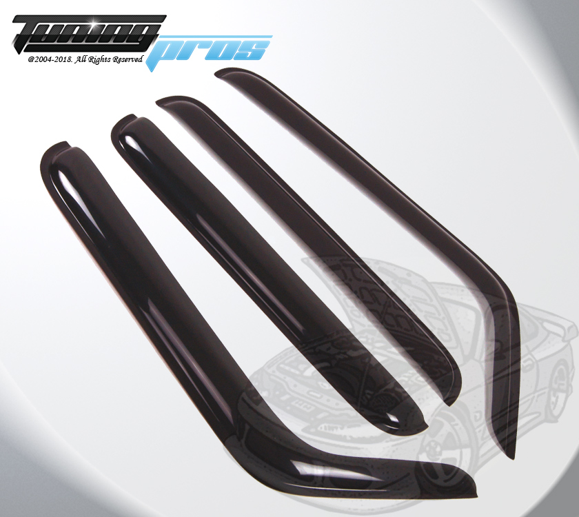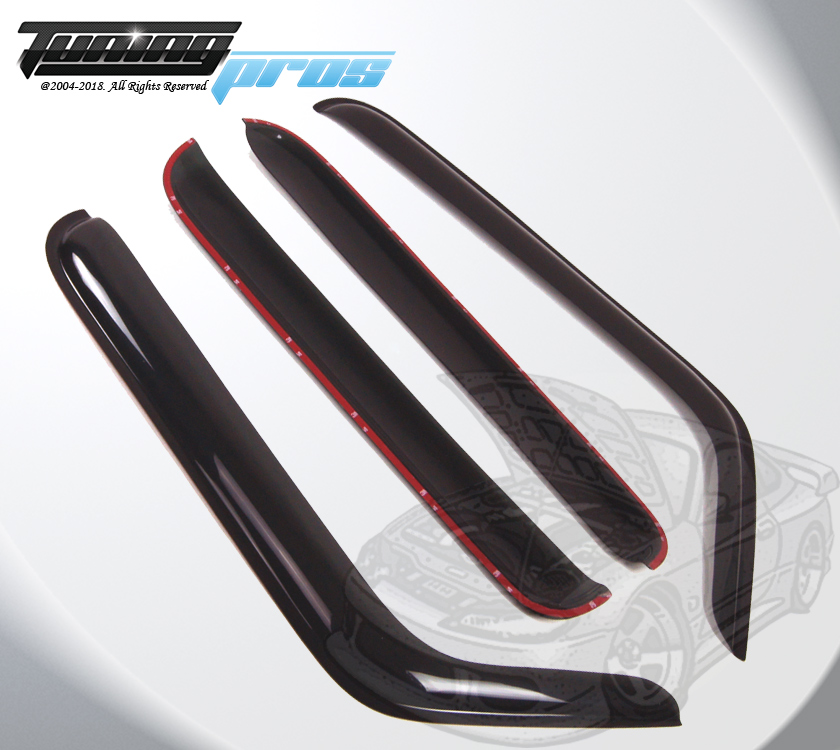 This vent visors are the most popular accessory for all vehicles. Made of reinforced acrylic in smoke tinted color. It can help to reduce heat buildup in parked vehicles by allowing air in when partially open. The vent visor keeps rain out and lets fresh air in vehicles. Easy installation with approved tape. Custom made fit each model (Please check compatibility table on this listing). Each sold for One complete set. Coupe models (2 Door/ Hatchback) contains 2 vent shades visors. The Sedans, wagons and SUVs contain 4 vent shades visors (Please check on listing title and picture about 2pcs or 4pcs visor for this listing). Spec & Features: