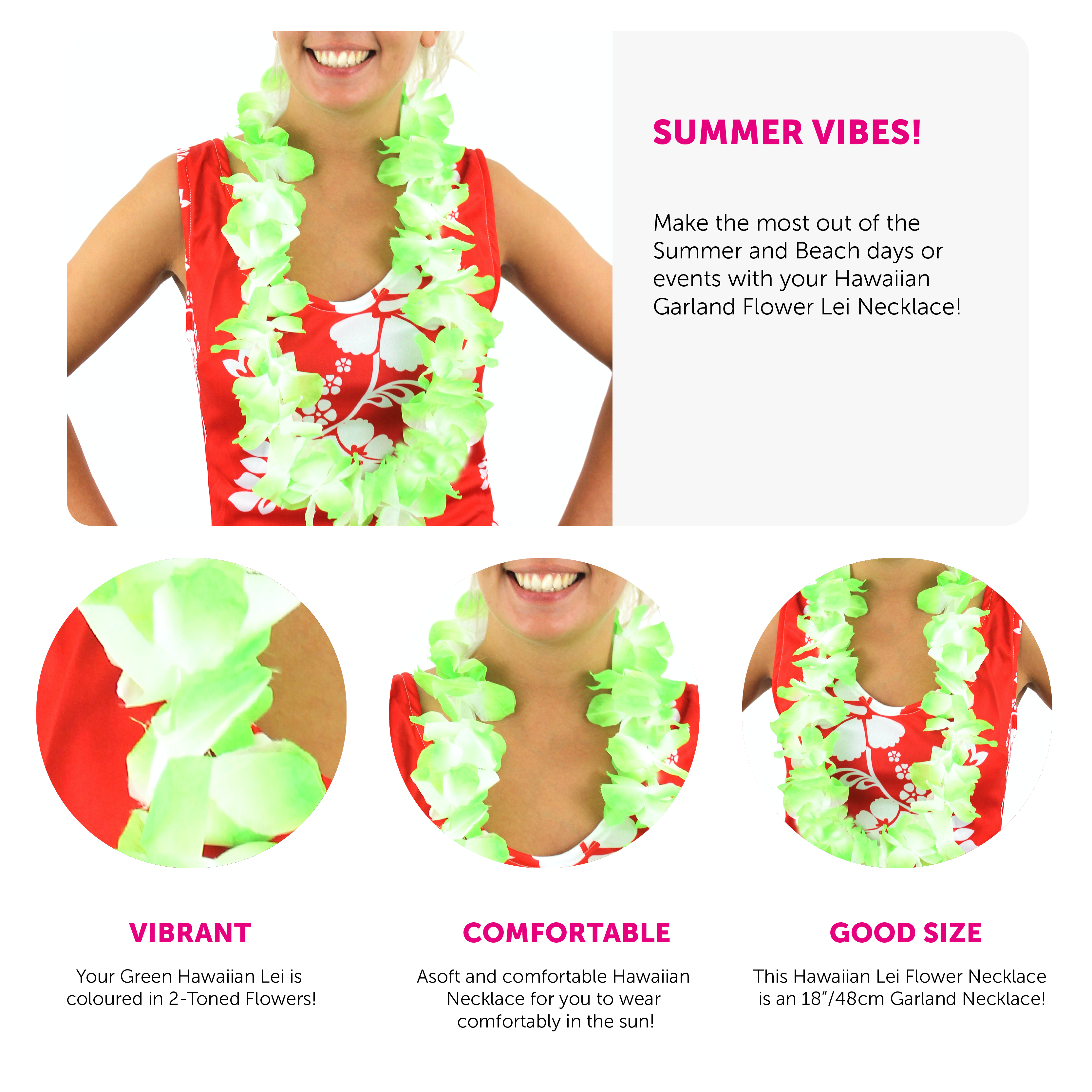 PERFECT FOR SUMMER AND HAWAIIAN FANCY DRESS: Whether you cook up a storm for a BBQ in the Summer, or attend a Hawaiian party, your Hawaiian Garland Lei Flower Necklace is sure to set the tone and raise everyone’s spirits high!