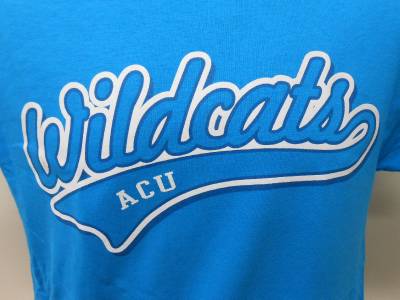This is a NEW ABILENE CHRISTIAN WILDCATS T-SHIRT WITH SCREEN PRINT DETAIL.