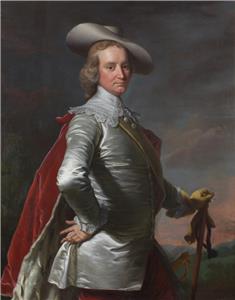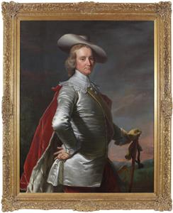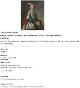 A spectacular oil on canvas (laid down on a panel) three quarter length portrait painting by Thomas Hudson (1701-1779) of a gentleman wearing a Van Dyck costume. The sitter is believed to be Thomas Osborne (1713-1789) who was the 4th Duke of Leeds.