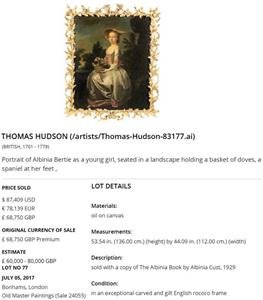 Hudson visited the Low Countries in 1748 and Italy in 1752. In 1753 he bought a house at Cross Deep, Twickenham, just upstream from Pope’s Villa. He retired toward the end of the 1750s. William Hickey described the elderly Hudson, "His figure was rather grotesque, being uncommonly low in stature, with a prodigious belly, and constantly wearing a large white bushy periwig. He was remarkably good tempered, and one of my first-rate favourites, notwithstanding that he often told me I should certainly be hanged.". He died at Twickenham in 1779. His extensive private art collection was sold off in three separate sales.