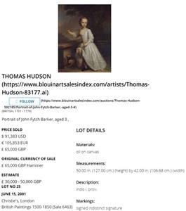 Hudson was most prolific between 1740 and 1760 and, from 1745 until 1755 was the most successful London portraitist.