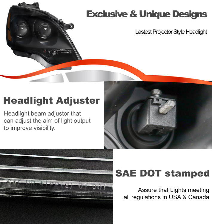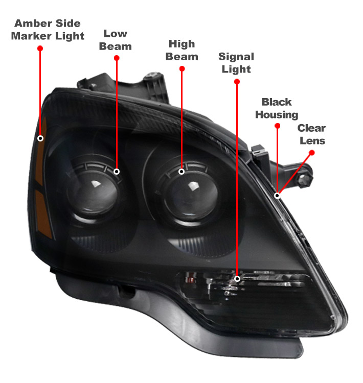 For 2007-2012 GMC Acadia Projector Headlights Headlamps - Black