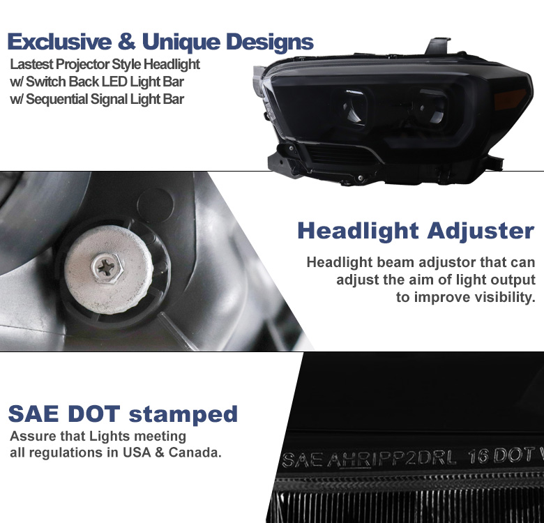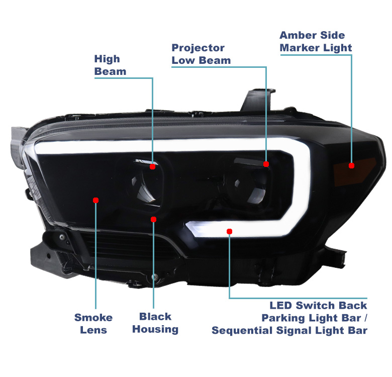 | Fitment | Compatible with 2016-2023 Toyota Tacoma SR | SR5 | Trail *Do not fit models with factory LED Daytime Running Light (DRL) headlights **Do not fit models with factory full LED headlights |