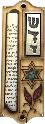 This beautiful hand crafted Mezuzah is a classical item of contemporary Israeli art at its best. Made with all new materials, it combines wood, colorful gemstones and an inner (non kosher) scroll. On the front it is carved with Hebrew letter Shin the first letter of Shedai, which stand for "Guardian of the doors of Israel". This mezuzah will add beauty and splendor to your front door, and leave a lasting impression to all who come through it.