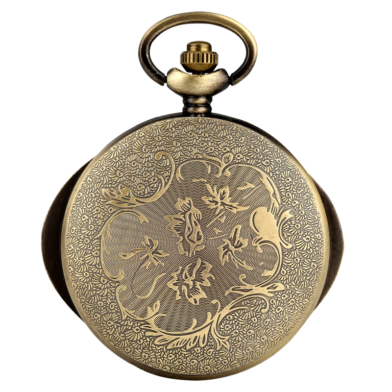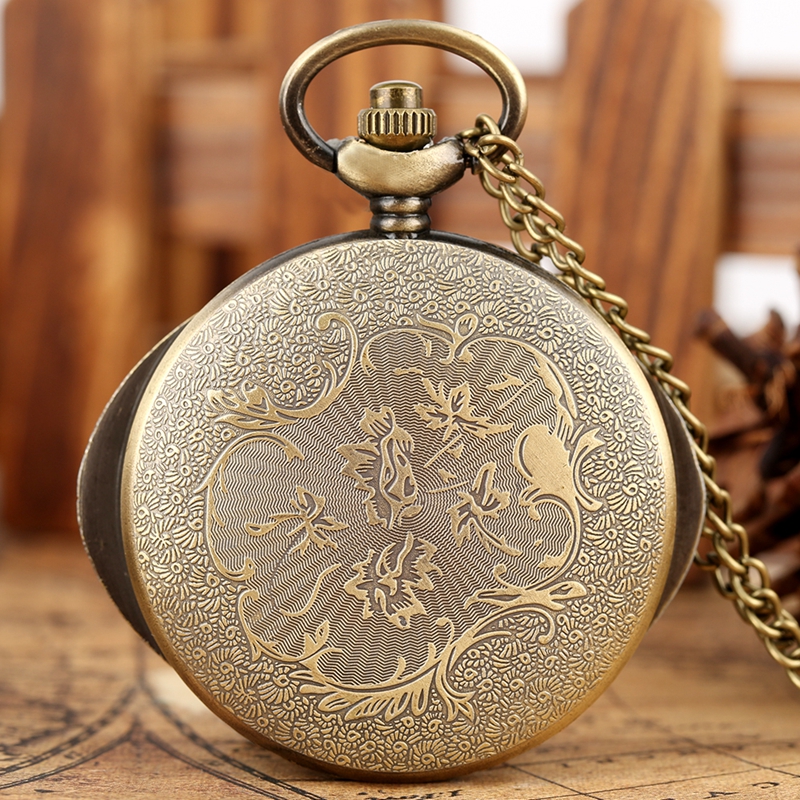 Bronze Flower Pocket Watch Women's Quartz Pendant Necklace Birthday Gift Idea