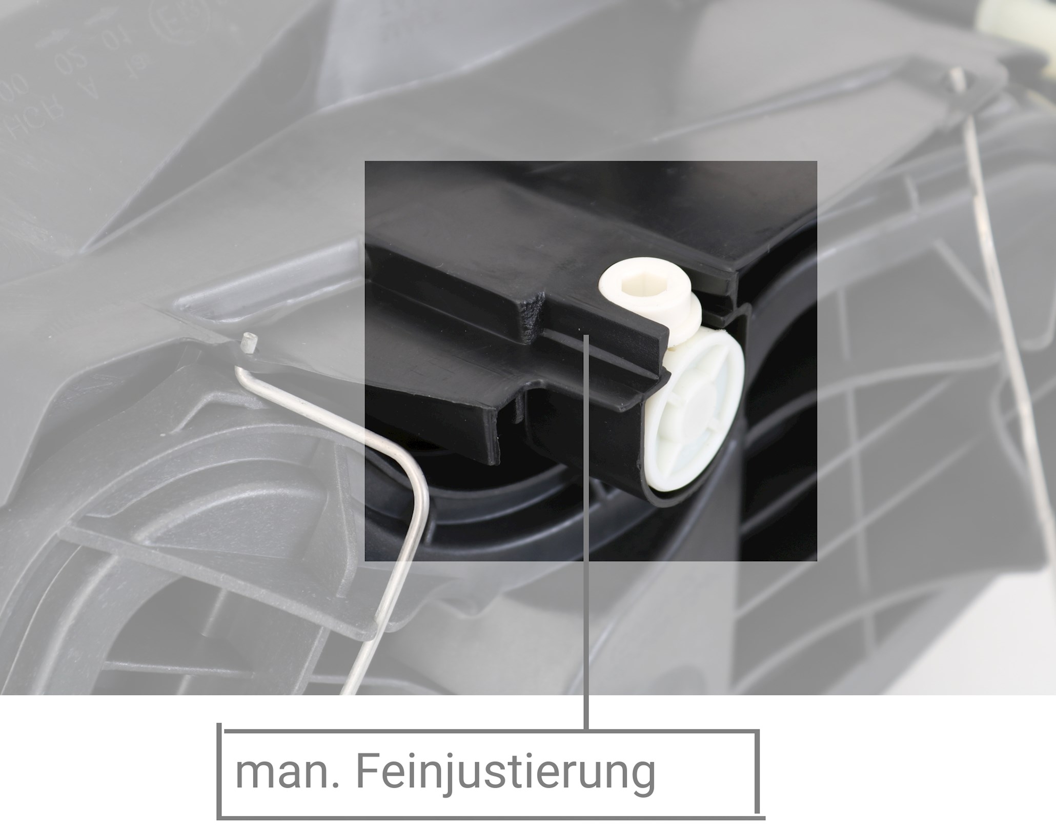 - Lichtbild-Feinjustierung über Einstellschrauben wie beim OEM-Scheinwerfer