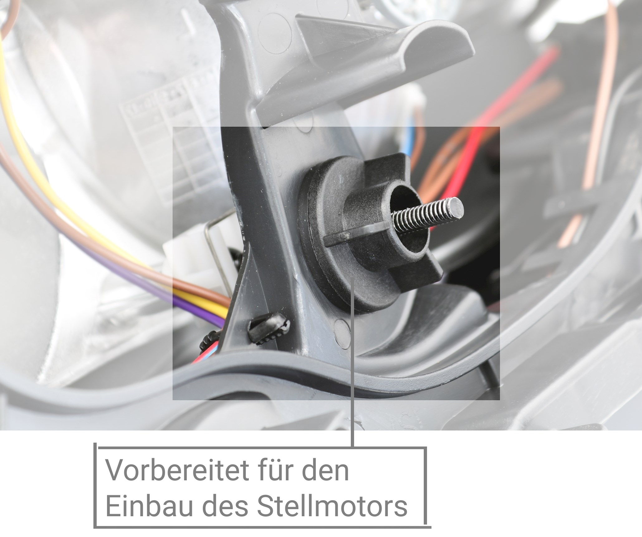 - vorbereitet für den Einbau des Stellmotors für elektrische Leuchtweitenregulierung