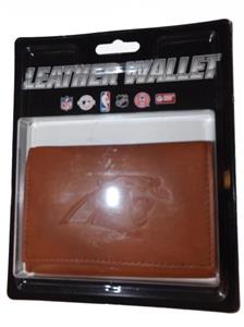 New Carolina Panthers Black/Tan Leather Wallet Tri-Fold Great Gift