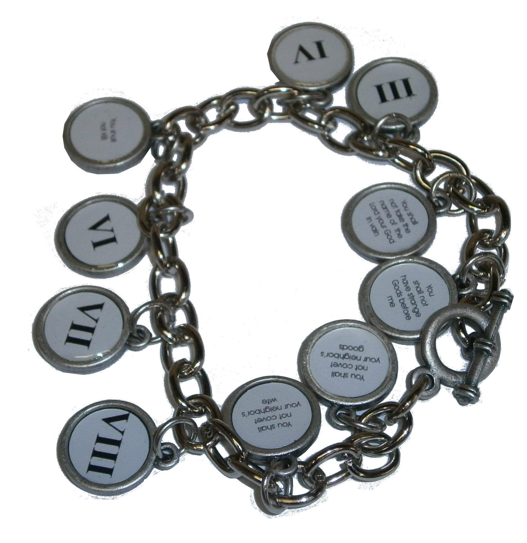 10 medals Bracelet showing Commandments - Silver ( 7cm or 2.8 inch in diameter )