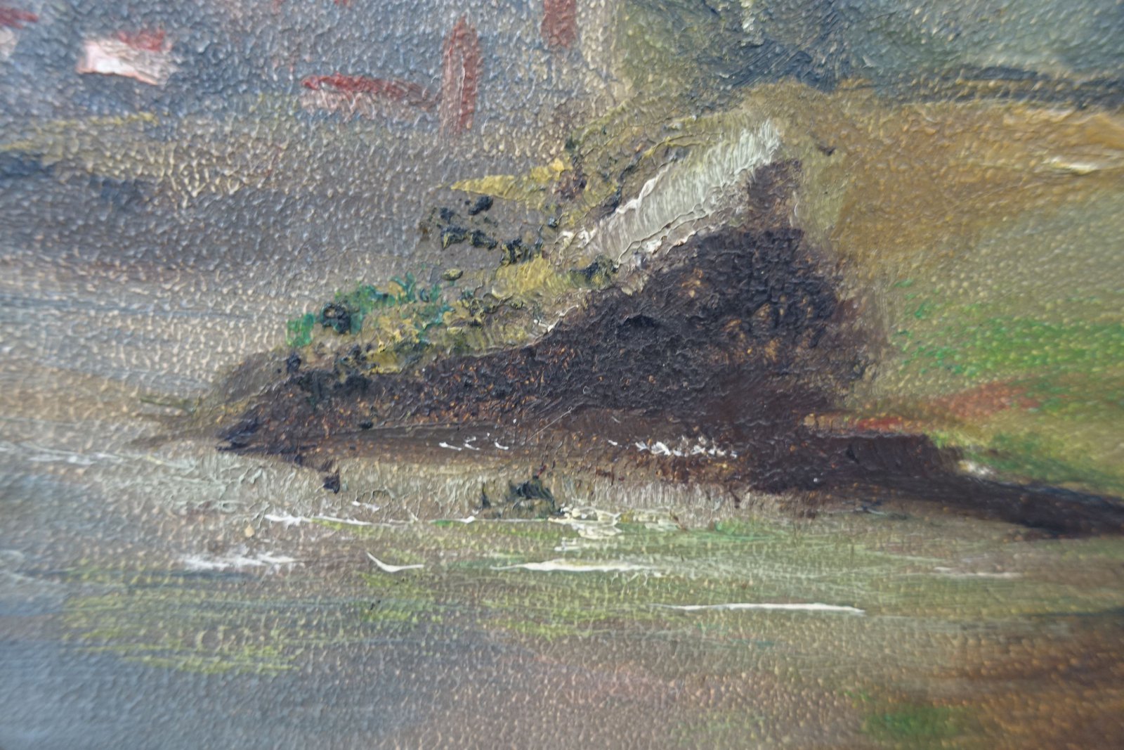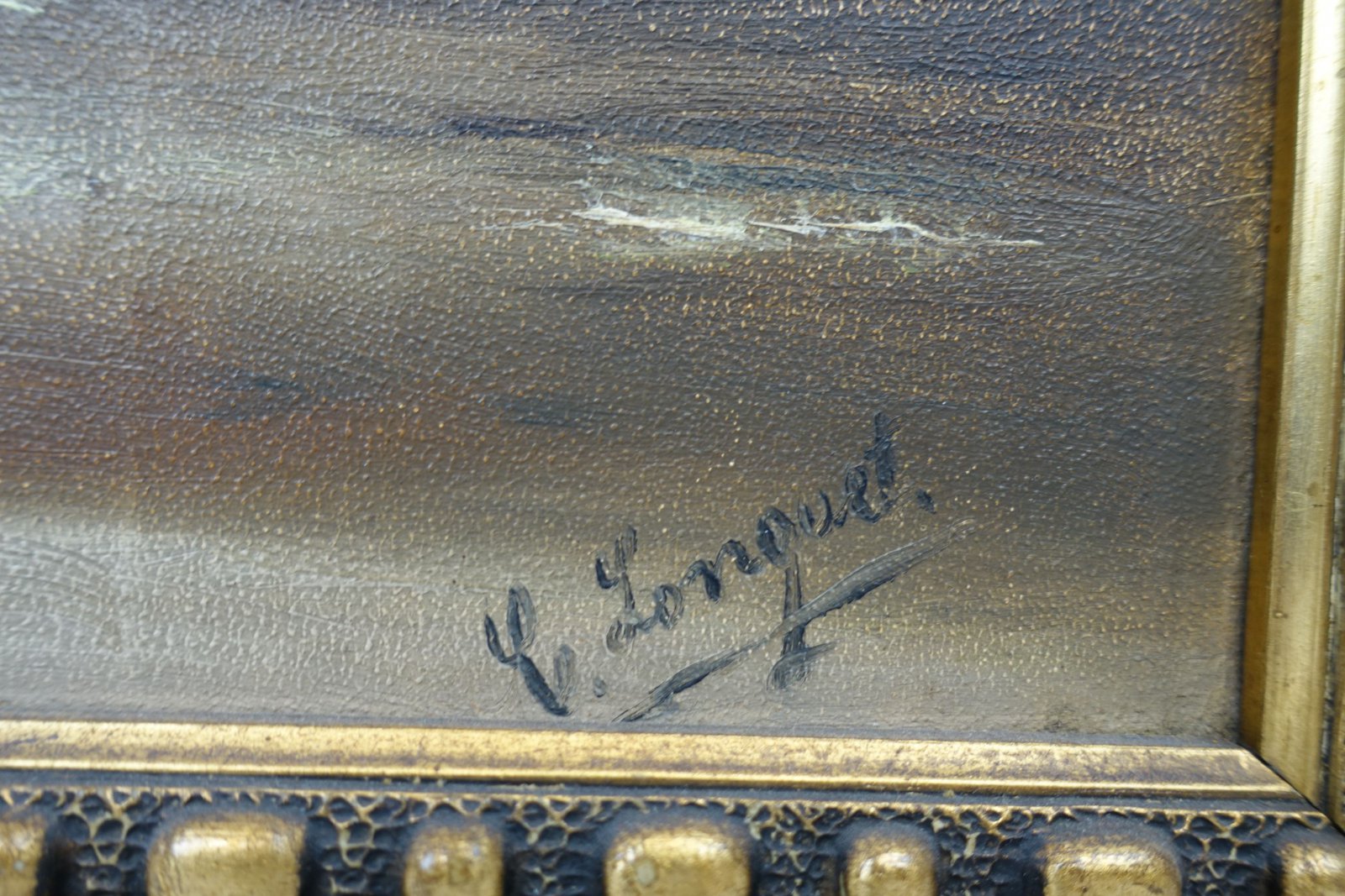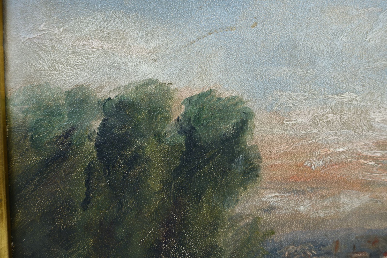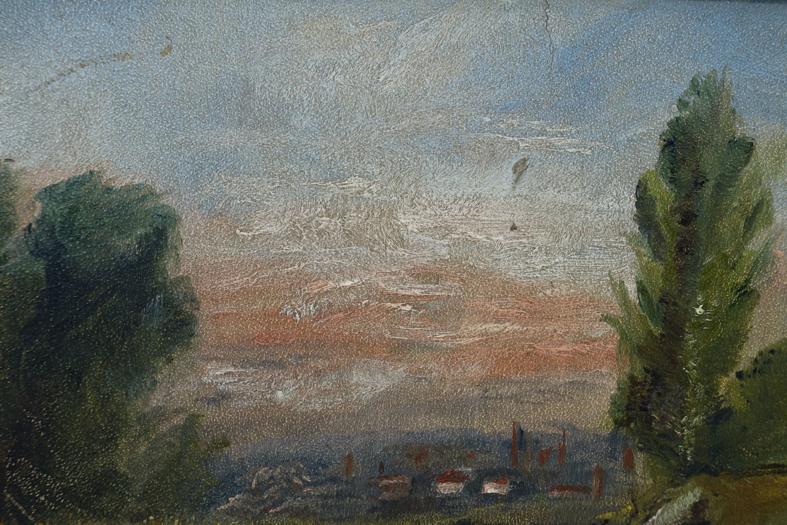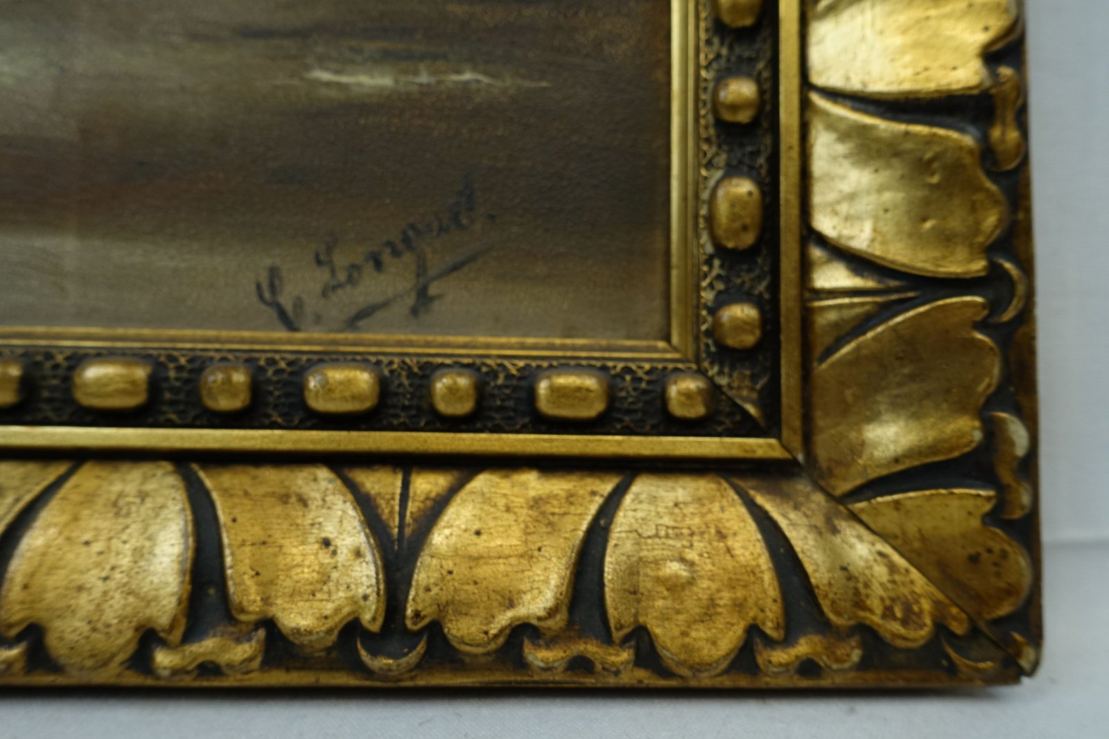 Das Gemälde weist Kratzer und Oberflächenverschutzung auf.