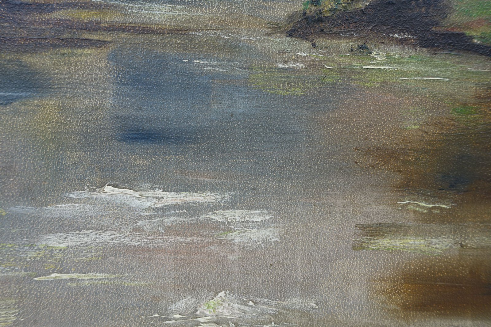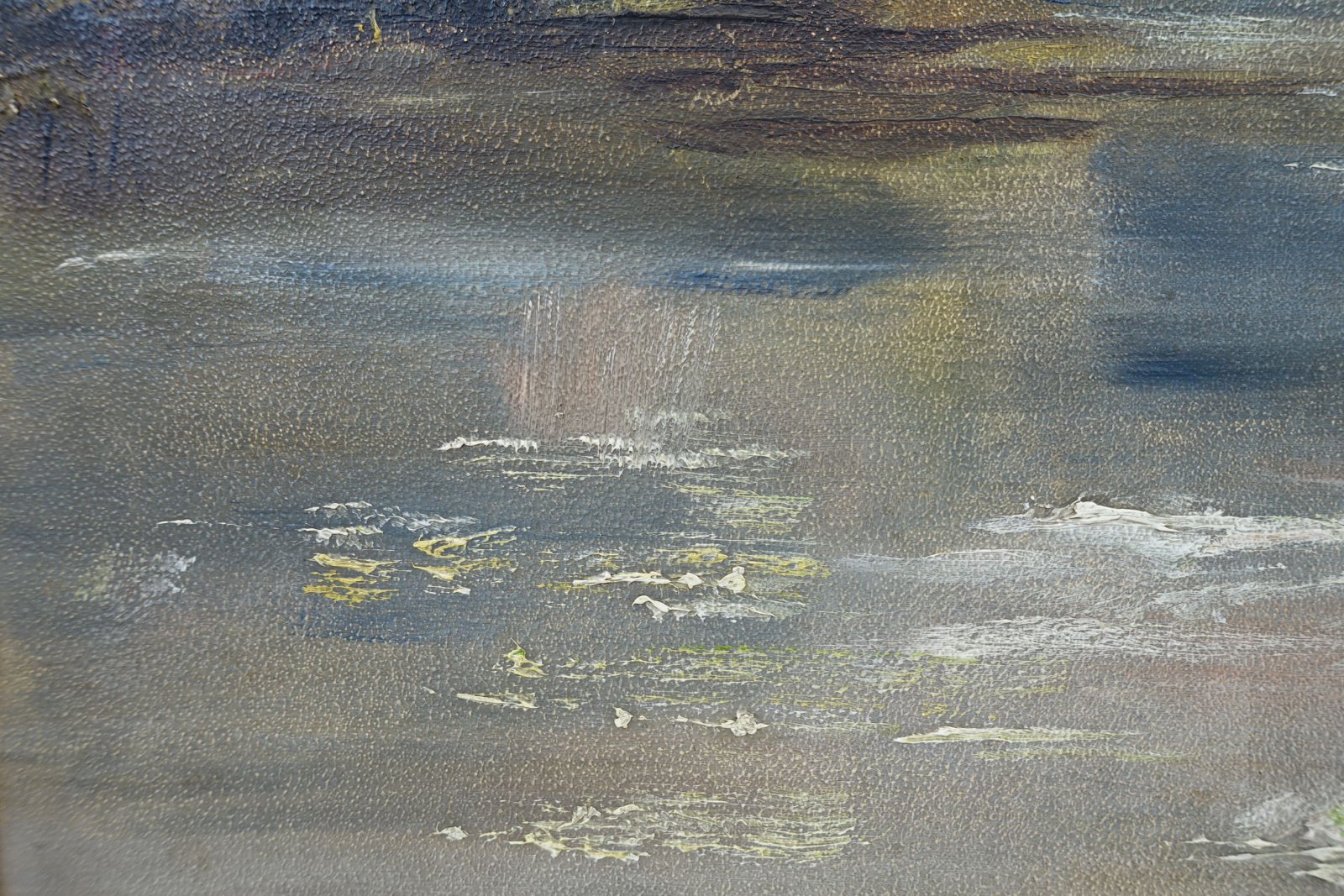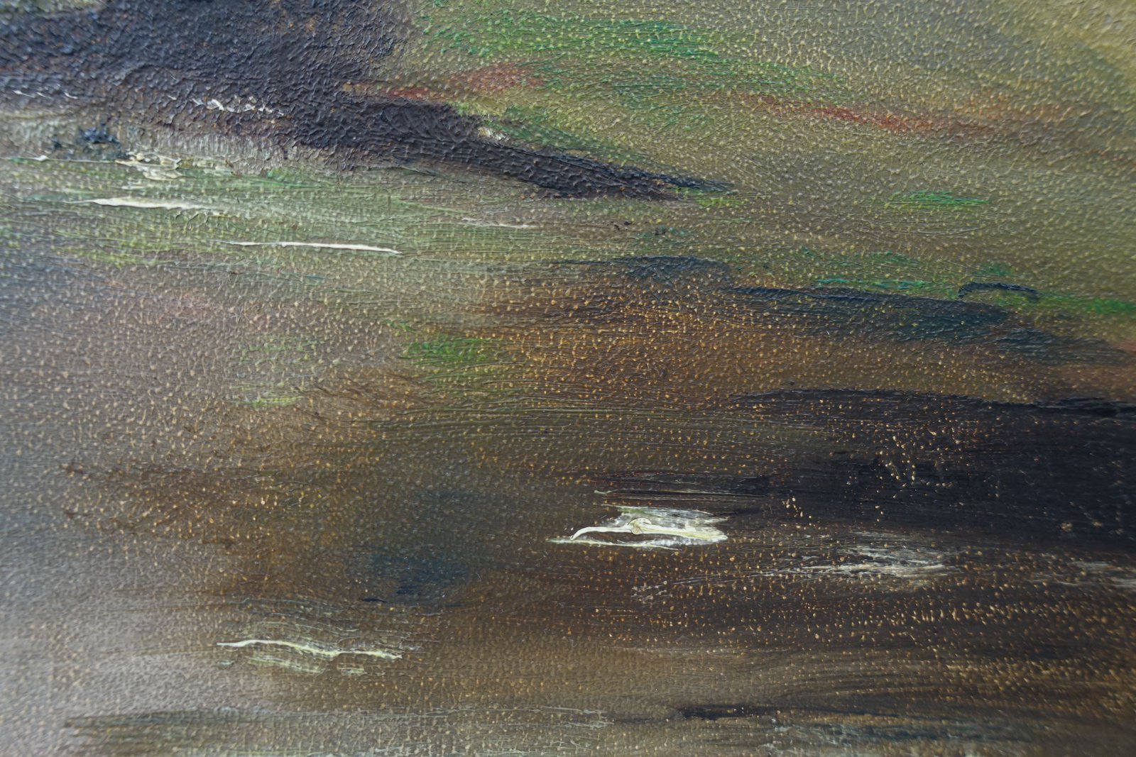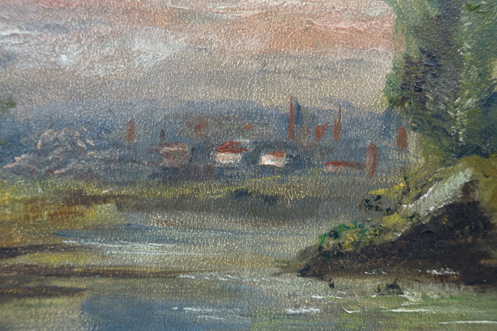 Das Gemälde weist Kratzer und Oberflächenverschutzung auf.
