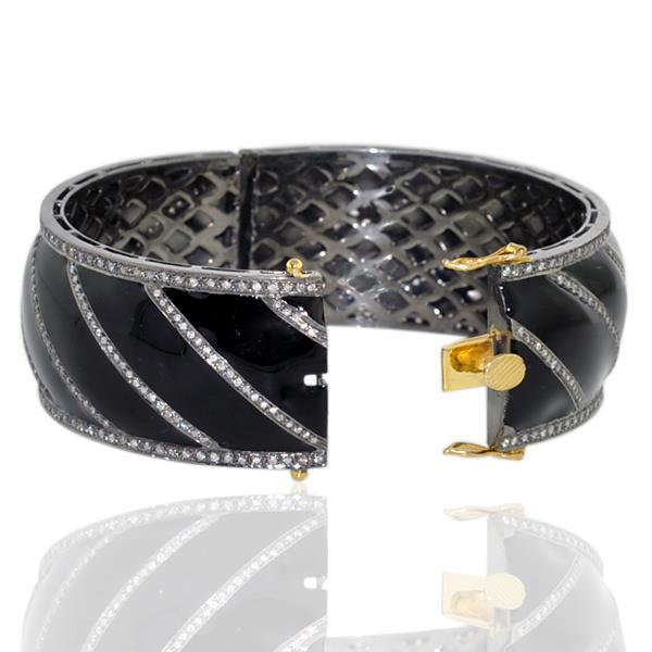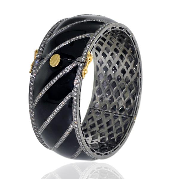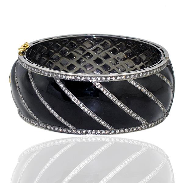 Pave Diamond Designer Bangle Bracelet 925 Sterling Silver Enamel Fine Jewelry
