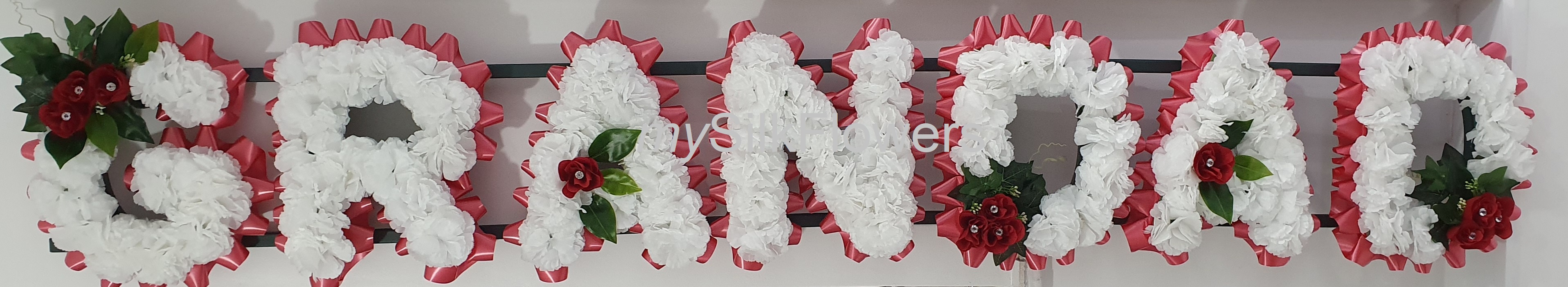 Made with artificial silk flowers which creates a long lasting tribute/gift for your loved one.Purchase the item as shown and send us a message with the following: