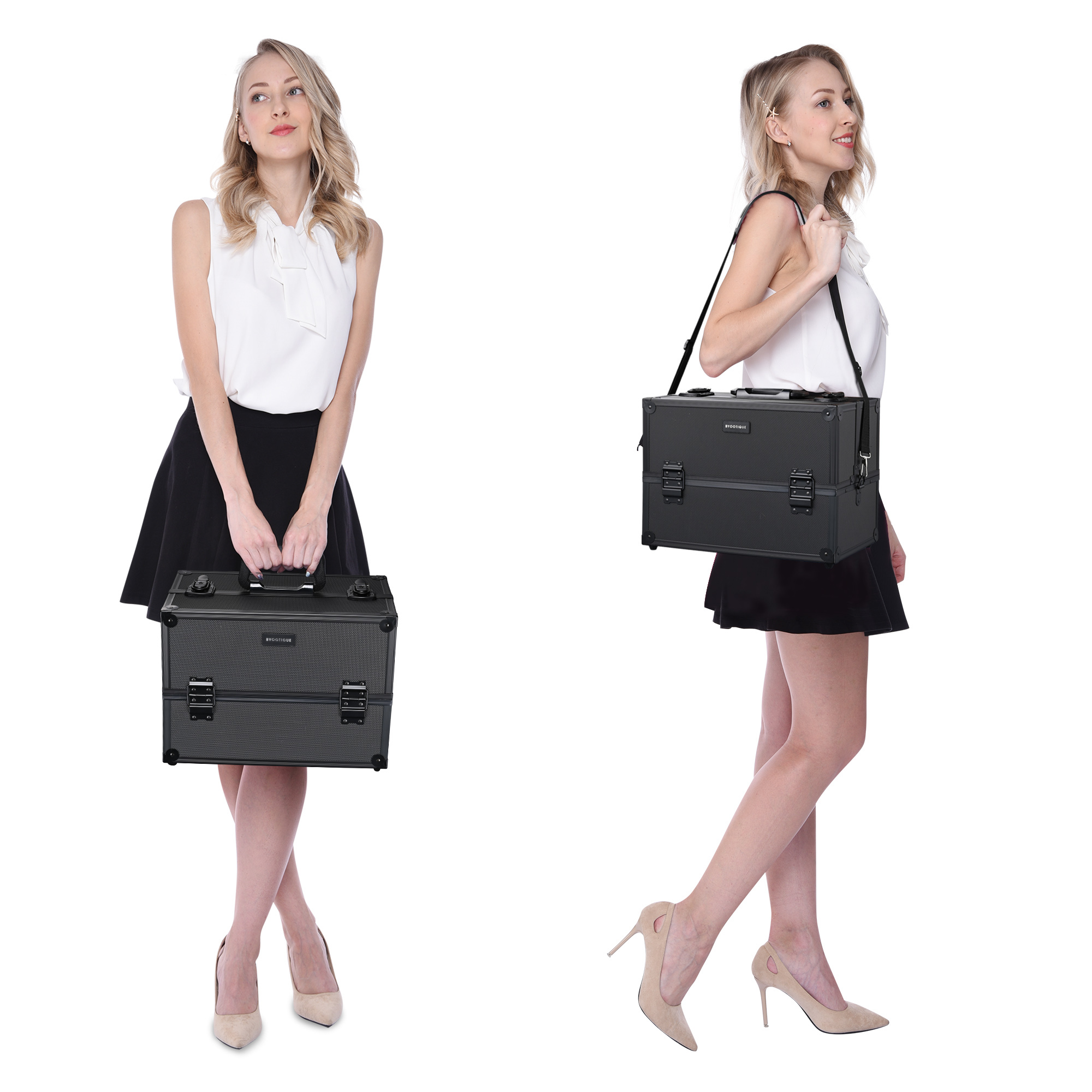 - Lightweight & Portable - This Aluminum Cosmetic Case comes in a compact size of 14" x 8 1/2" x 10" and a lightweight body of 5.4 Lbs, allowing for convenient hand carry and use while travelling on planes, trains and buses, ideal for on-the-go makeup artists and hairstylists