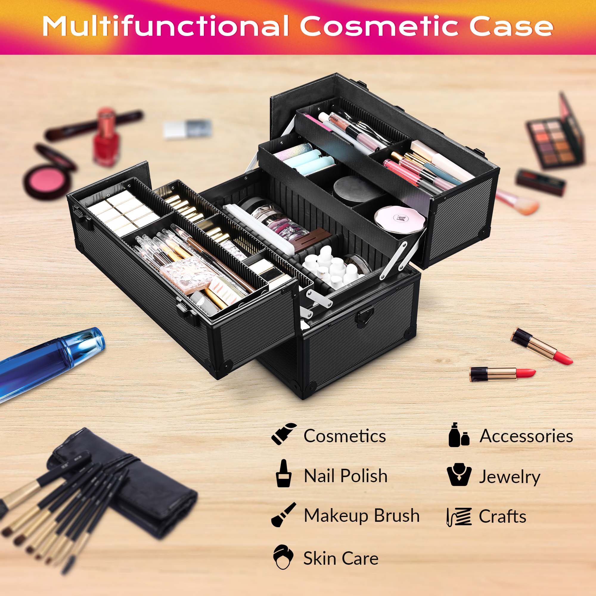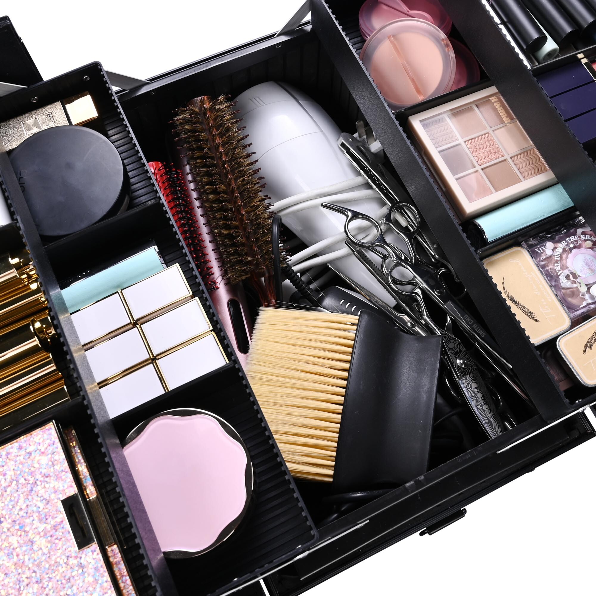 - Customizable & Safe - Features a large bottom compartment with dividers for organizing and storing large cosmetic items, along with a secure lock-and-key system for protecting and securing your cosmetics while traveling