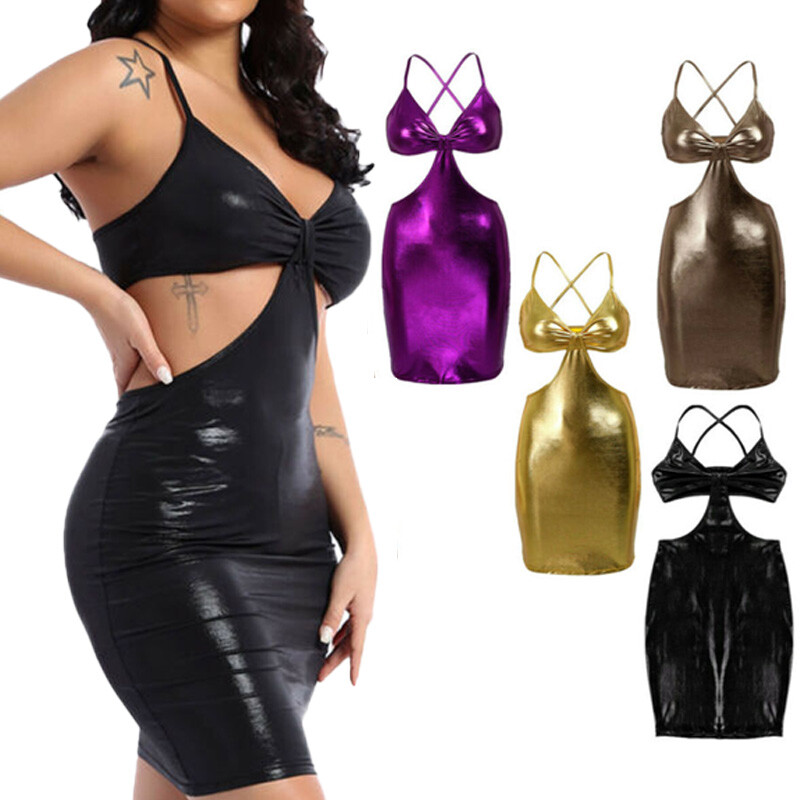 Women’s wetlook party club bodycon dress nightwear, chic and stylish style.
