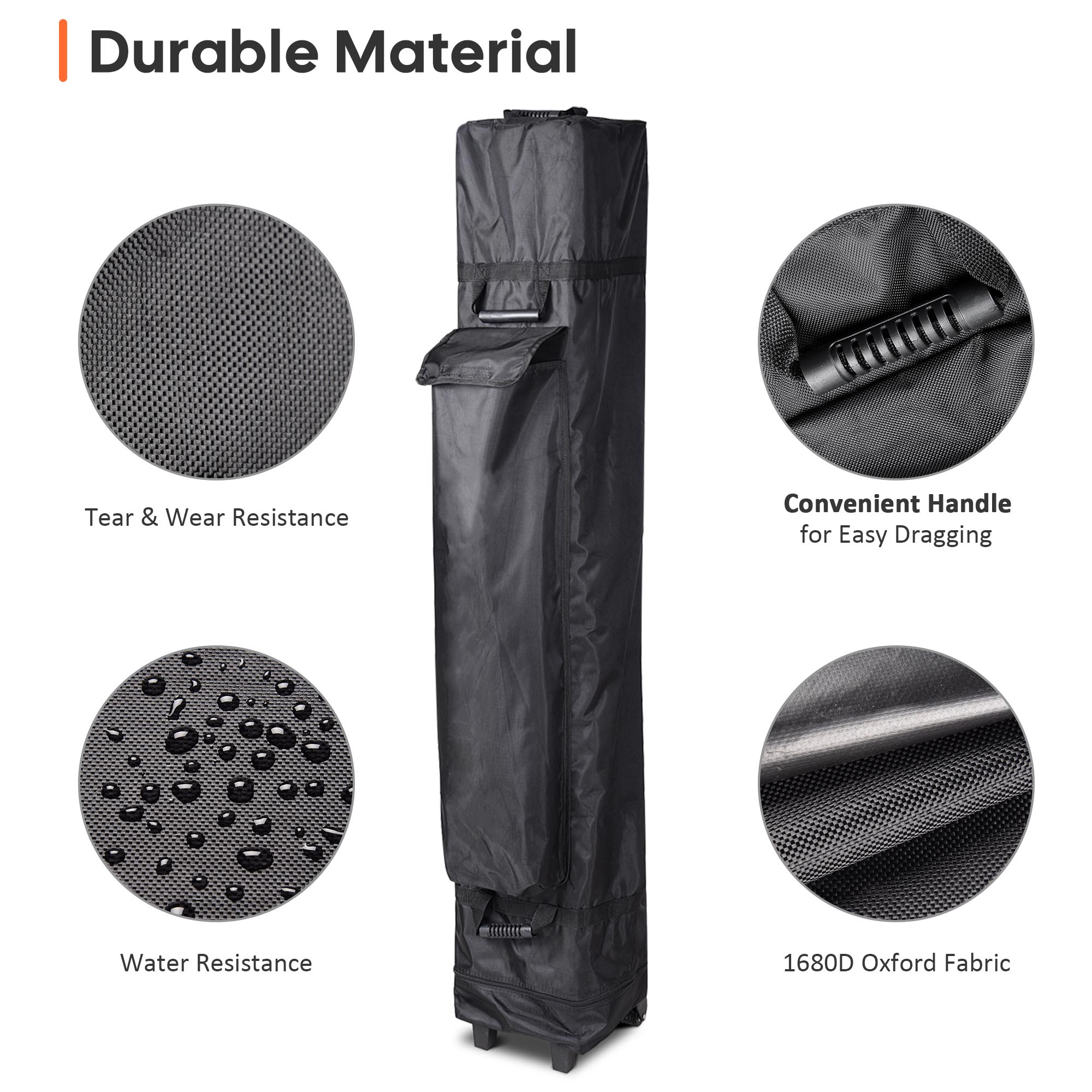 - 3 Large Handles & Oversized Pocket - Equipped with 3 large handles for offering comfortable grips, including 1 handle on the top for dragging the roller bag to roll conveniently, and 2 handles on the front side for easy lifting and loading into your car trunk; Comes with an oversized pocket with a lid for extra storage of canopy accessories