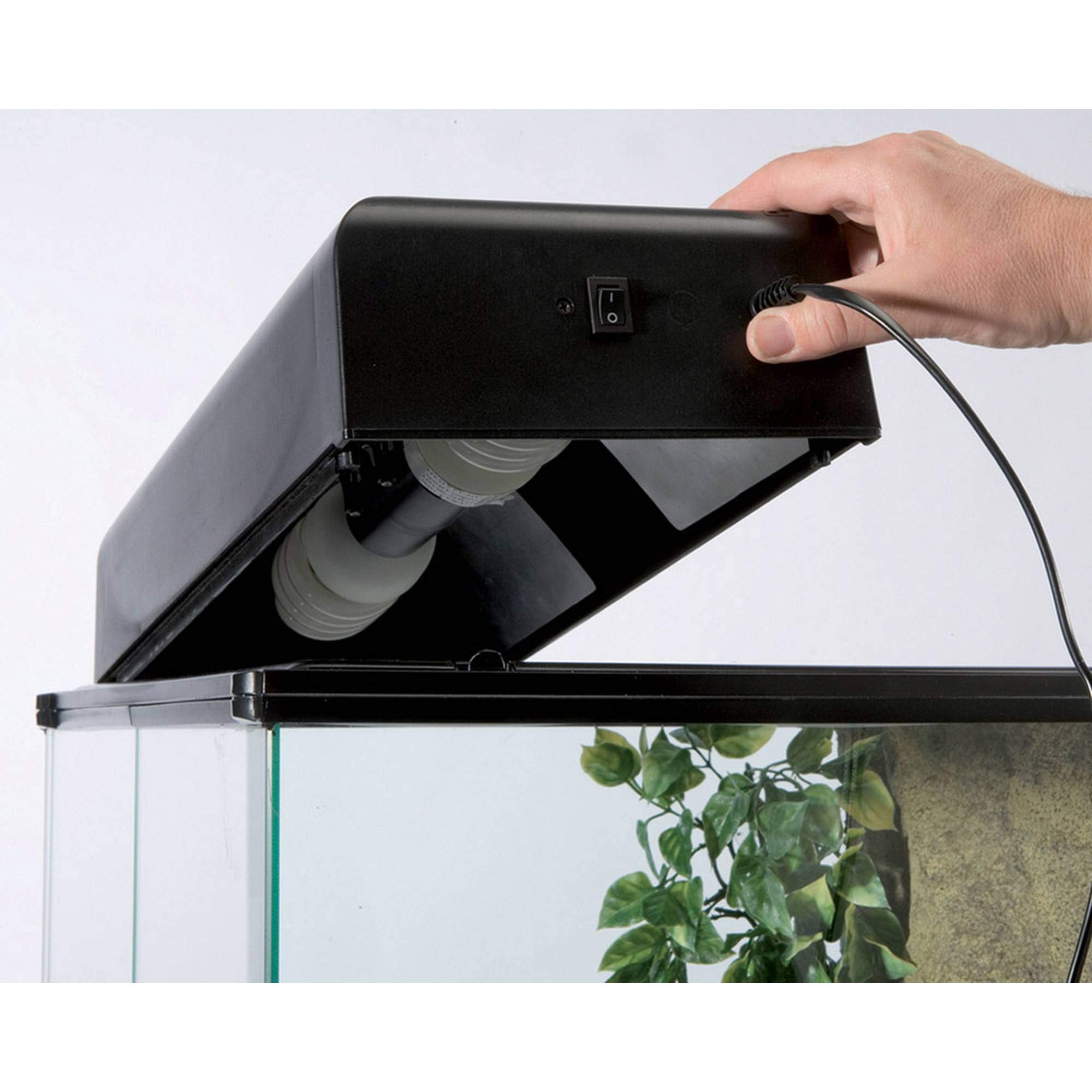 La EXO TERRA COMPACT TOP è una plafoniera fluorescente per terrario creata per i terrari di vetro EXO TERRA GLASS TERRARIUMS. Questo coperchio si installa facilmente e ha quattro dispositivi per le lampade compatte fluorescenti o per le lampade ad incandescenza fino a 26 W. Si può usare una combinazione di lampade EXO TERRA REPTI GLO (PT2226 / PT2227 / PT2228) per creare il rapporto luce ultravioletta/luce visibile per ogni specifico rettile. La lampada ad incandescenza DAYTIME HEAT LAMP può essere usata per aumentare la temperatura dell'aria ambiente. Gli accessori opzionali come il termometro e l'igrometro l'EXO TERRA si possono posizionare nell'apposita fessura del coperchio.