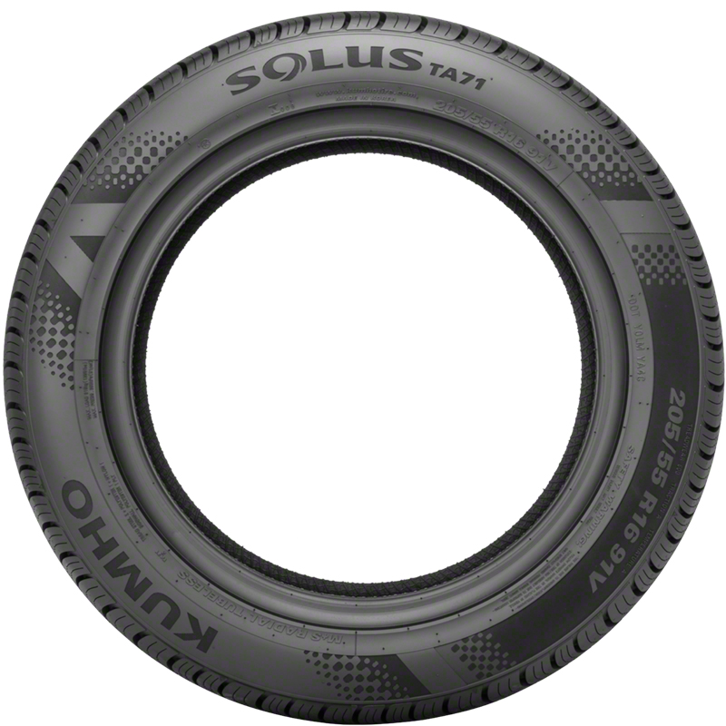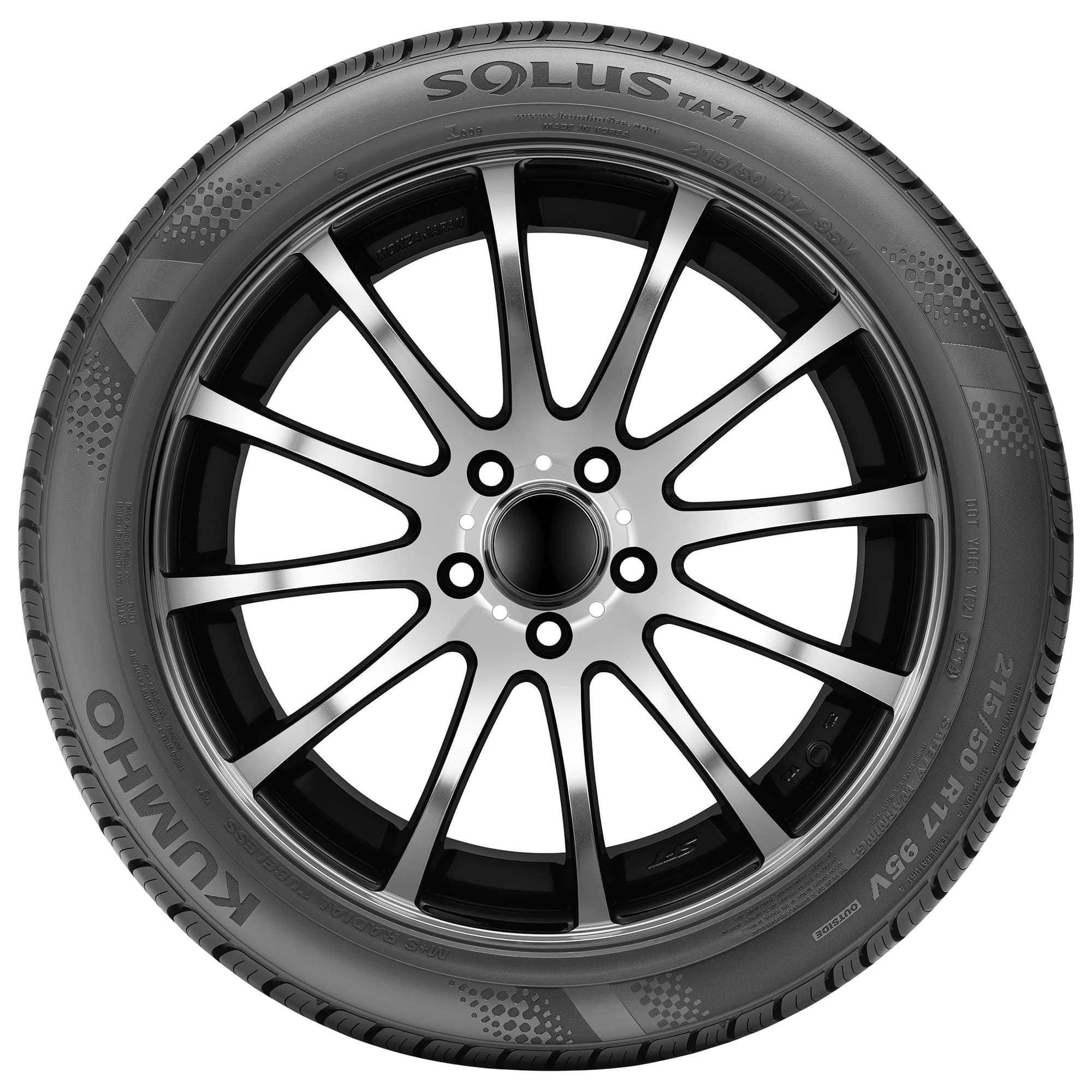 Kumho's Solus TA71 is an all-season tire that's built for use on luxury sedans and features an asymmetrical tread pattern that enhances grip and steering response in dry, wet, and light winter weather conditions. Backed by a 60,000 mile limited manufacturer tread life warranty, the Solus TA71's computer optimized design reduces road noises and vibrations to create a quiet, comfortable ride for drivers and passengers.