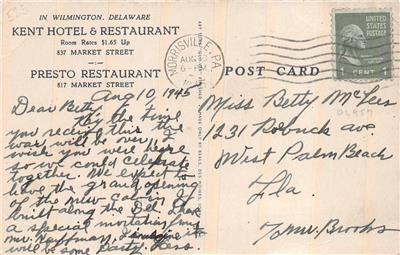 Sent 1945, divided back with bottom right corner crease/wear & toning. Fair-Fine condition.