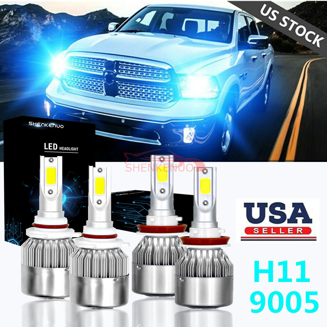 This listing includes 2 pairs of Ice Blue LED Bulbs to replace 2007-2014 Chevy Suburban Silverado Tahoe LED Bulbs Conversion Kit: 9005(High Beam Headlights) + H11(Low Beam Headlights).