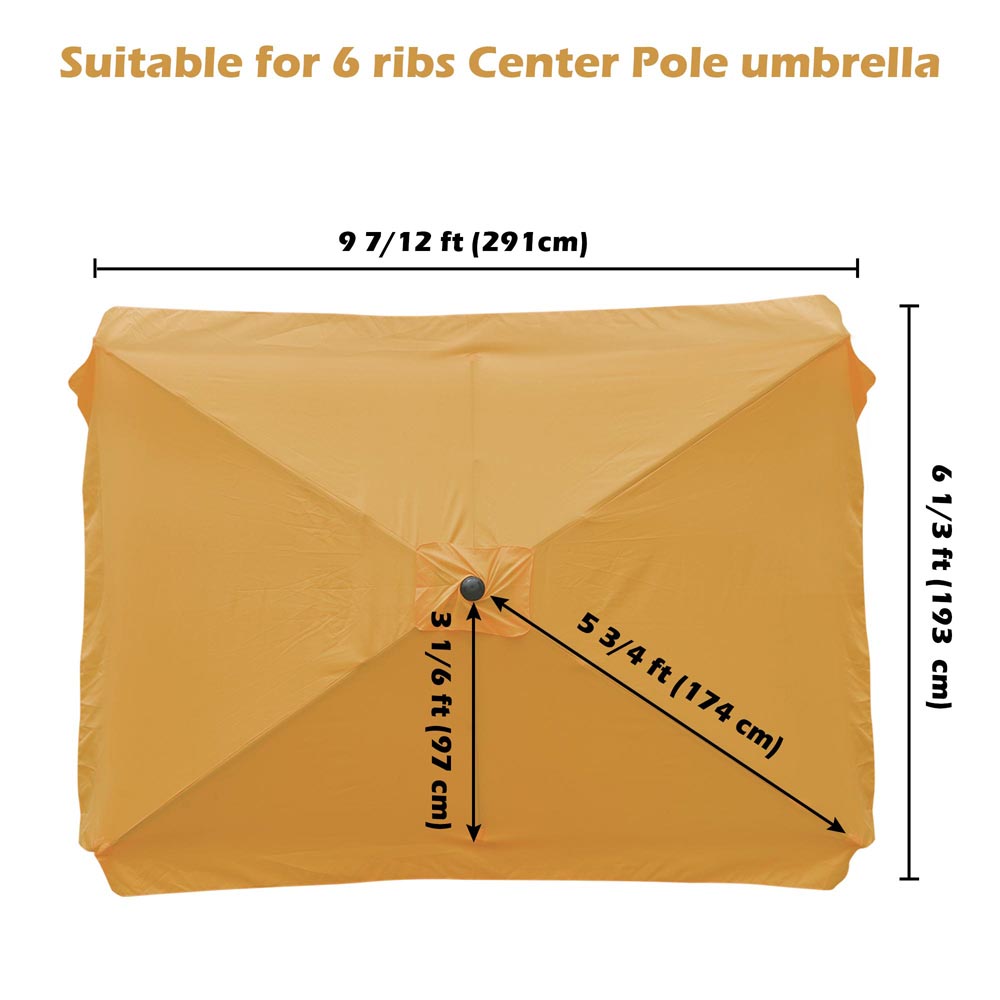 - Compatibility - Universal Replacement Umbrella Canopy fits 10x6.5ft 6-rib patio umbrella with long rib length from 5 2/3 to 5 3/4ft and short rib length from 3 1/6 to 3 1/4ft, also compatible with our umbrella model YES0292, YES0313 and YES0315; It features a rectangular design with dark yellow color for modern stylish style which matches well with different beach chairs to deliver a summer coastal vibe