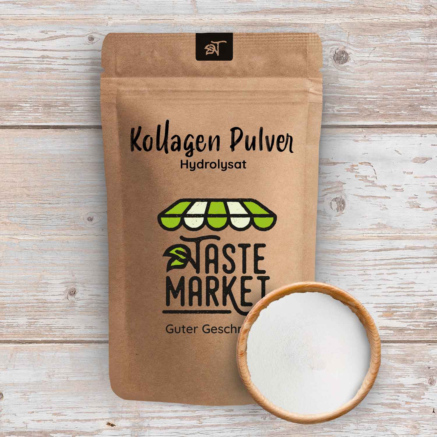 Kollagene sind Strukturproteine, die unter anderem in unelastischen Fasern, Sehnen, Bändern, Knochen, Hautschichten und Knorpel vorkommen – bei Menschen, als auch bei vielzelligen Tieren. Im menschlichen Körper ist Kollagen mit rund 30% Anteil an der Gesamtmasse aller Proteine beteiligt und somit das am häufigsten vorkommenden Eiweiß. Unser Kollagen ist 100% hydrolysiert, es wird u.a. auch Kollagenpeptid genannt. Das Produkt wird vom Schwein gewonnen