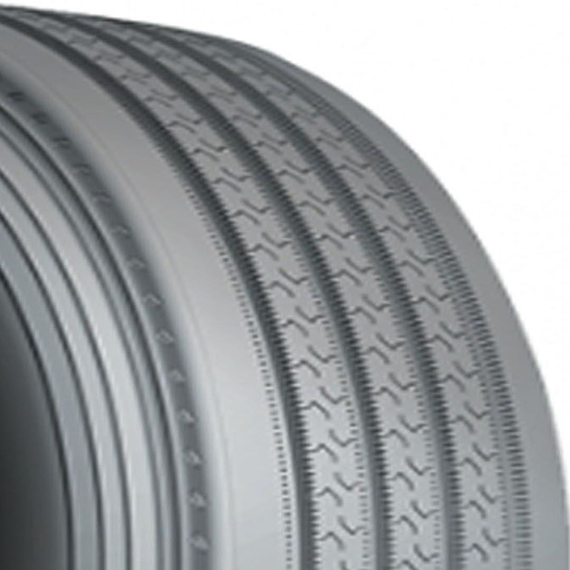 The LA441 from Thunderer is a premium commercial tire for the steer axles of semi-trucks in long-haul service. The LA441 resists hydroplaning with wide circumferential grooves and a dense sipe network, and features a wide footprint for great weight distribution, low rolling resistance (SmartWay certification pending), and up to 16 ply rating.