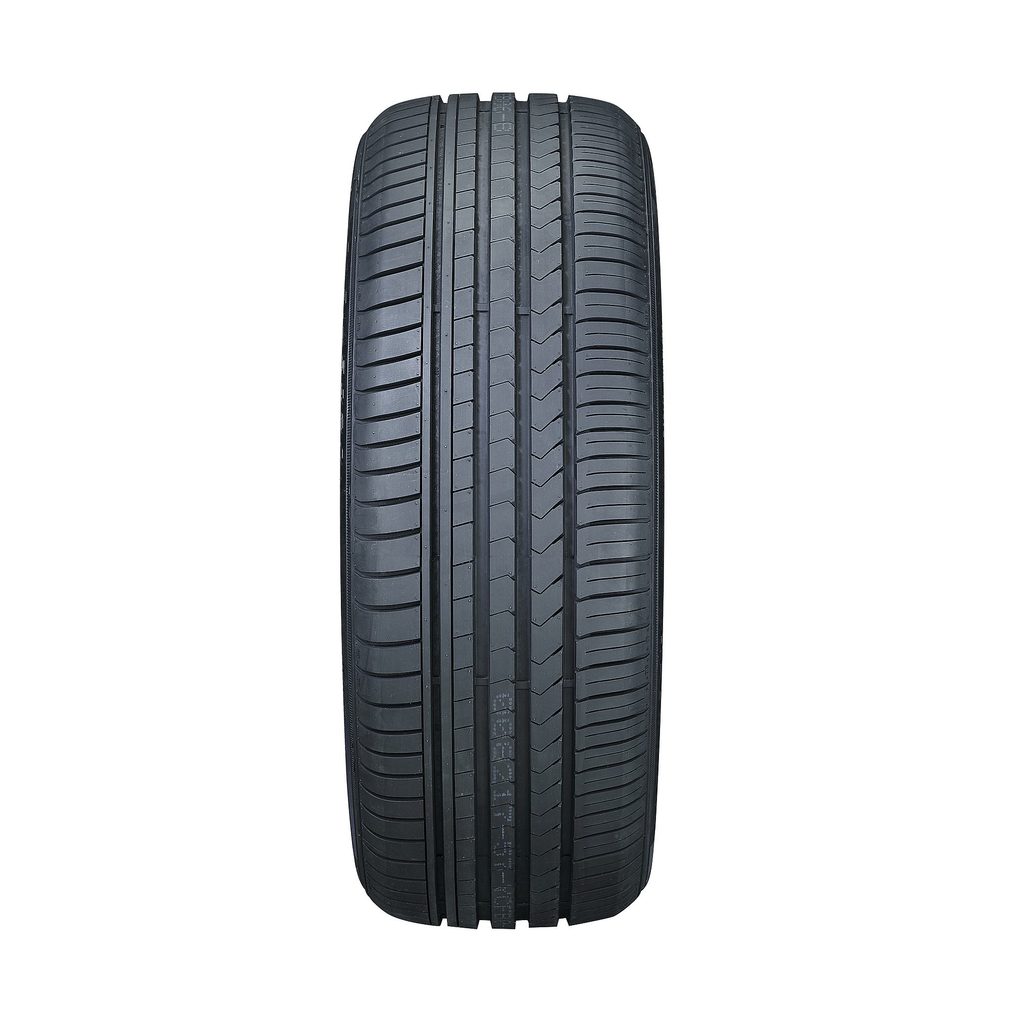 Designed for use on passenger cars, CUVs, and SUVs, the Forceland Kunimoto-F22 is a ultra-high-performance tire that's suitable for use in warmer months, when the temperature is more than 45 degrees Fahrenheit. The advanced asymmetric tread pattern of the Kunimoto-F22 allows for responsive handling, while the rubber compound is optimized to reduce the braking distance. Three wide and one narrow circumferential grooves ease water dispersion and reduce the chances of hydroplaning for improved wet traction, and the solid shoulder blocks of the Kunimoto-F22 provide better stability.