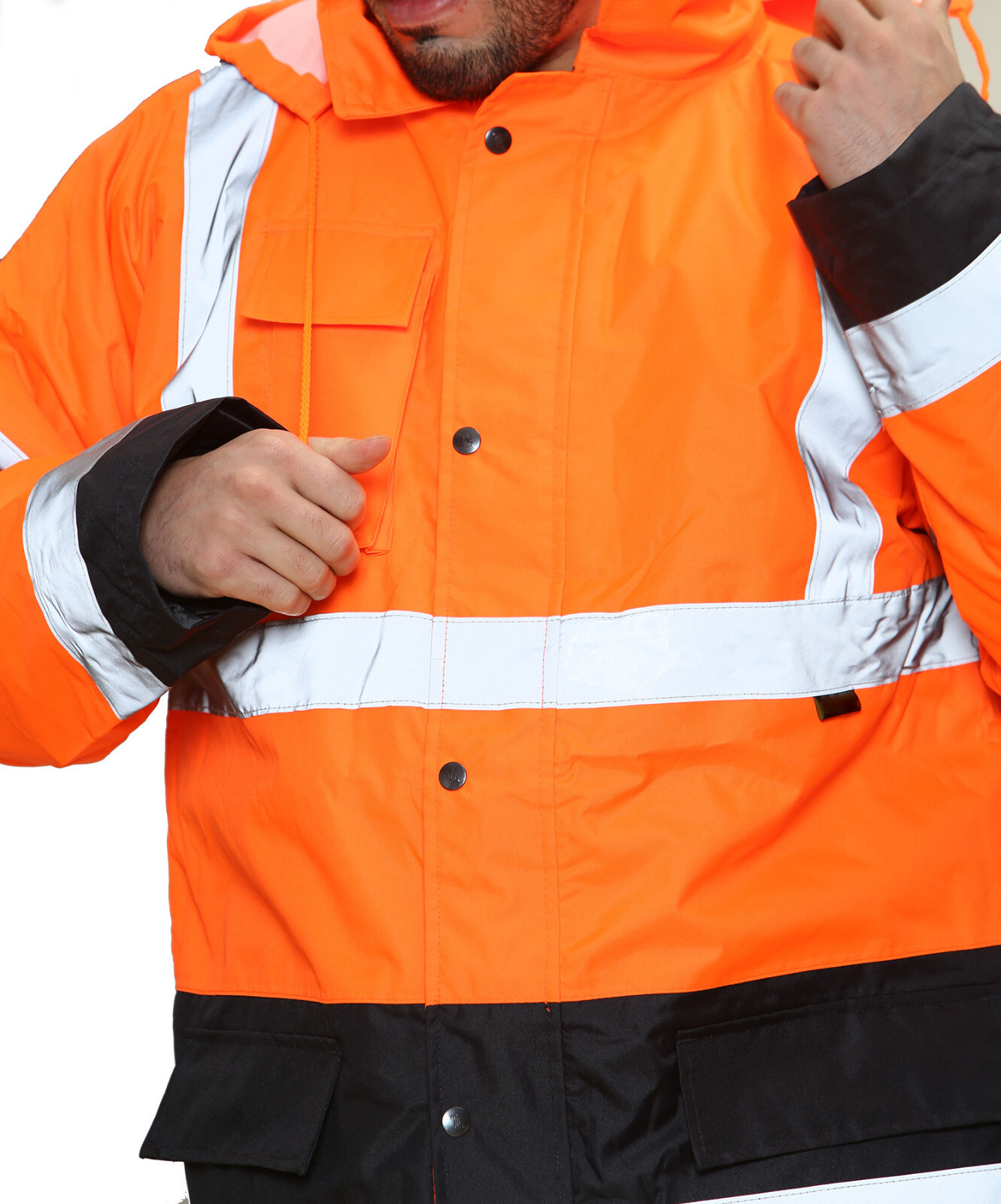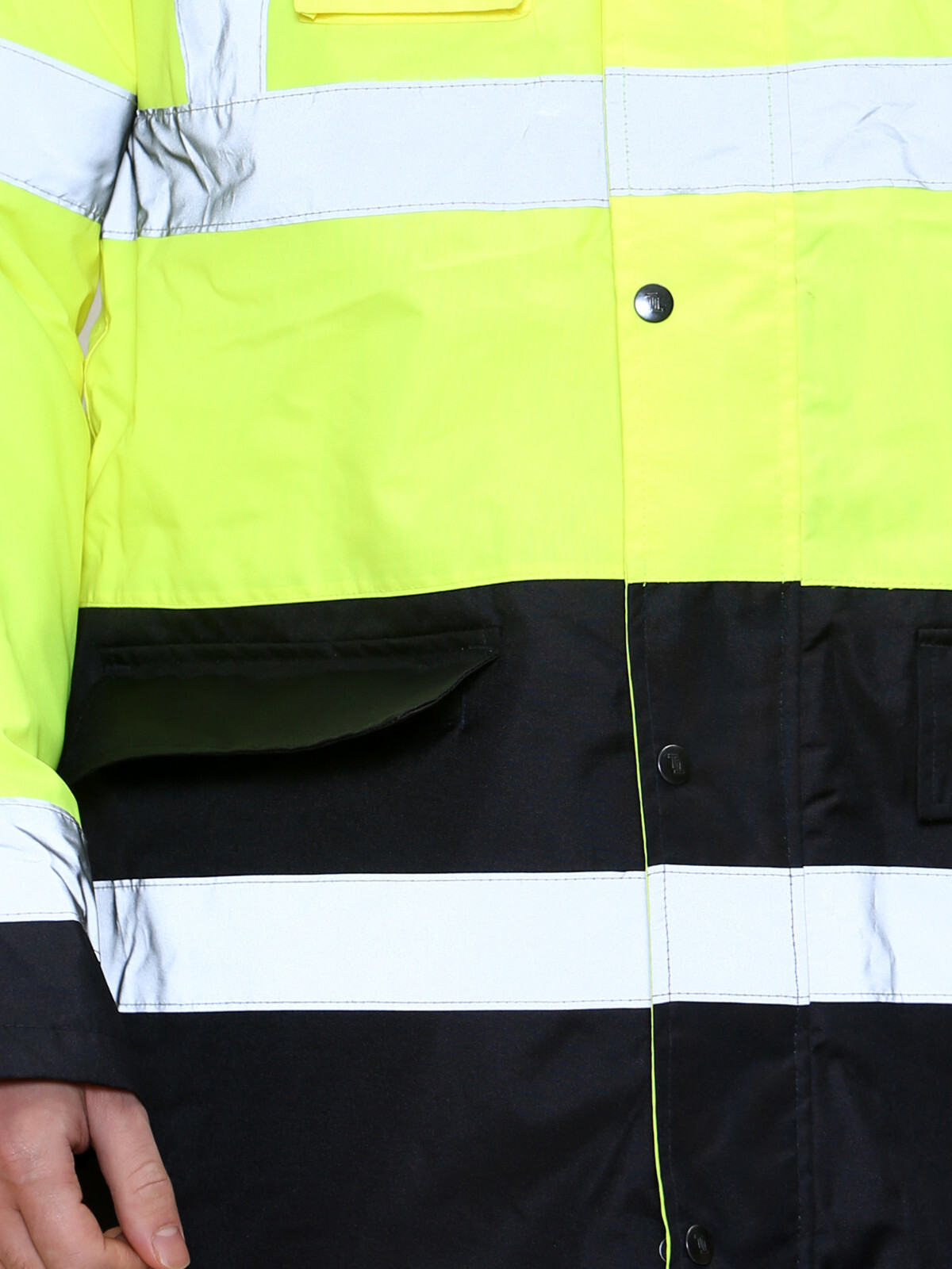 - Features All Seasons, Collared, Concealed Hood, Fleece Collar, High Visibility, Quilt Lined, Waterproof