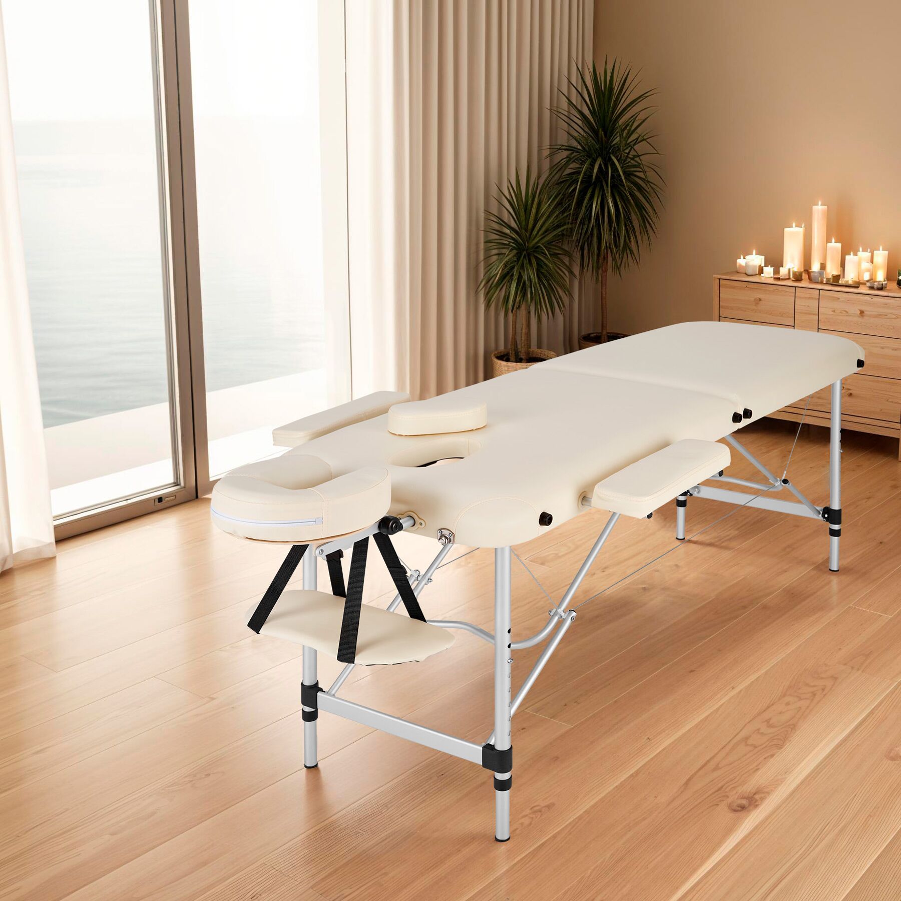 Unsere Massageliege ist dank des Aluminiumgestells besonders stabil und gleichzeitig leicht. Diese Konstruktion sorgt für eine lange Lebensdauer und macht die Liege ideal für den mobilen Einsatz. Egal, ob du sie zu Hause oder beim Kunden verwendest, du profitierst immer von der hohen Stabilität und dem geringen Gewicht.