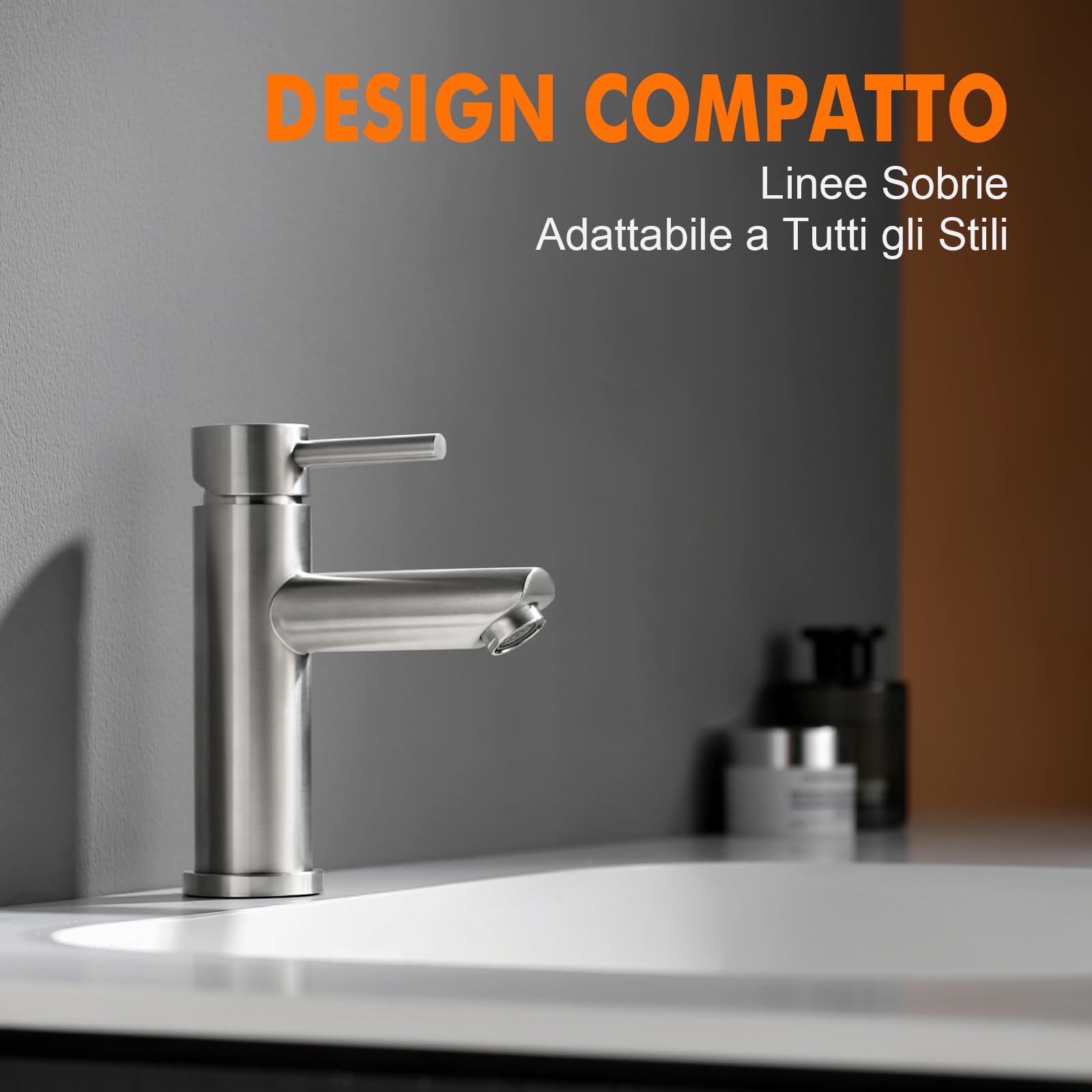 Ibergrif Rubinetto Bagno Lavabo Monocomando, Design Moderno in Acciaio Inox Antimpronta Grigio, Facile Installazione, M11103
