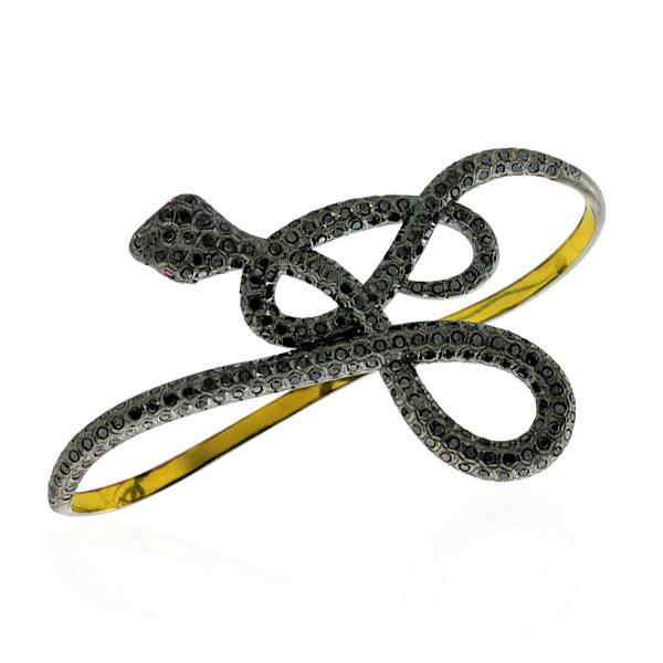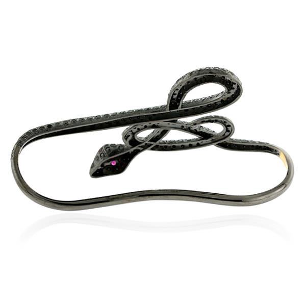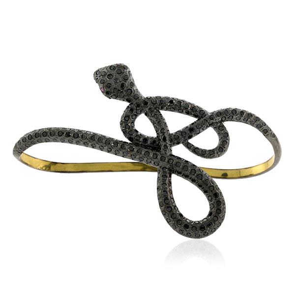 Black Diamond & Ruby Snake Wrap Palm Bracelet 925 Starling Silver