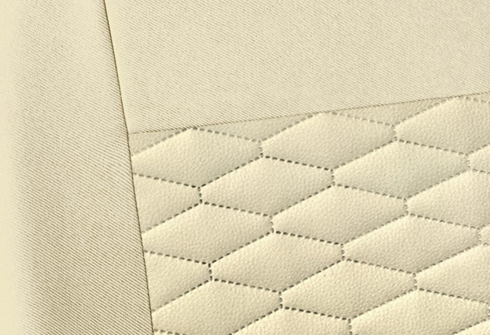 Die MODERN Sitzbezüge wurden im mittleren Bereich aus hochwertigem Kunstleder (Rückenlehne und Sitzfläche) gefertigt, das gesteppt und elegant geprägt ist.