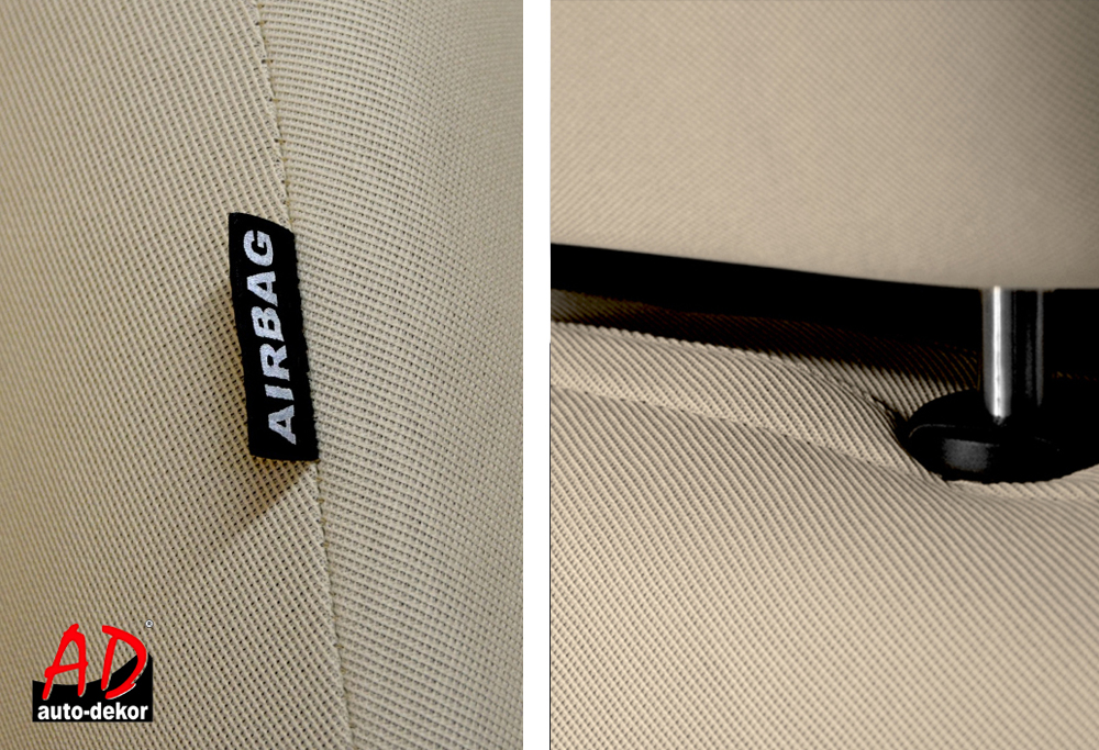 - Die Sitzbezüge können in Dreitürern verwendet werden, indem Aussparungen für die Hebel zum Umklappen der Vordersitze gemacht werden.