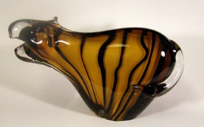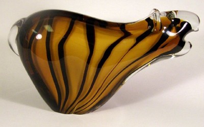 Simply Beautiful!! Vintage Studio Art Glass Modernist BENGAL TIGER Figurine.