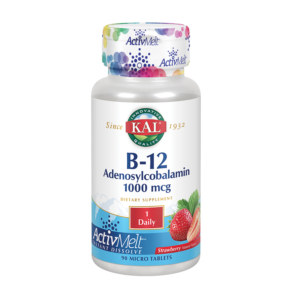 When it comes to energy metabolism, Vitamin B-12 cant be beat. Formulated for fast-acting support, KAL B-12 Adenosylcobalamin ActivMelt is a convenient and delicious way to help support healthy energy, concentration, nerve function, red blood cell synthesis, and normal homocysteine levels.