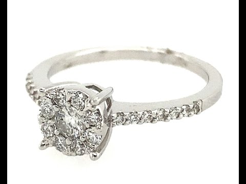 0.50 Carat Natural Diamond Cluster Engagement Ring G SI 14K White Gold