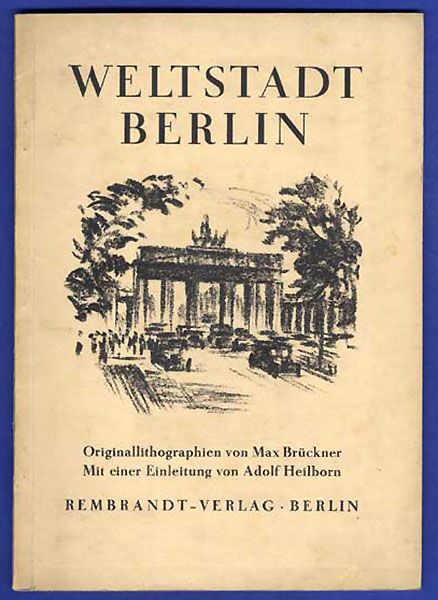 | WELTSTADT BERLIN BUCHKUNST GRAFIK Weltstadt Berlin. Originallithographien. von Max Brückner, Mit einer Einleitung von Adolf Heilborn Seltenes Ansichtenwerk von Berlin aus der Zeit der Weimarer Republik. Einband 1 Textblatt 12 Lithografien Rembrandt Verlag Berlin 1929